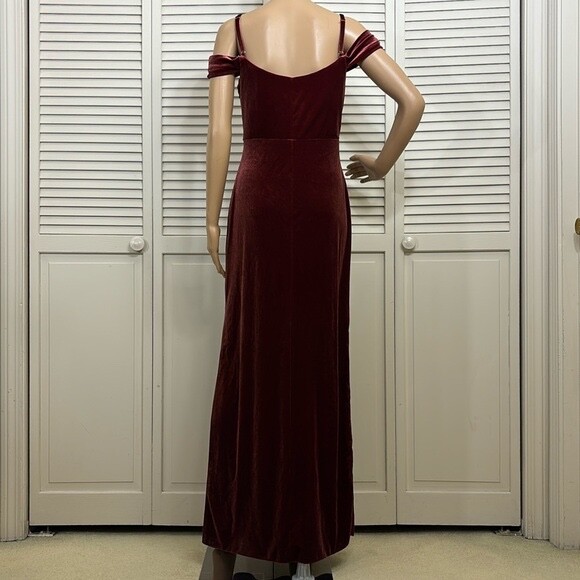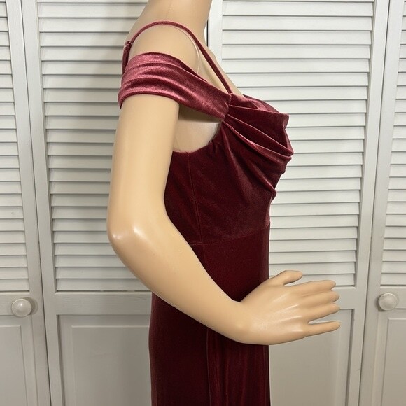 как выглядит Revelry Velvet Off the Shoulder Wine Formal Bridesmaid Gown Dress Size 6 фото