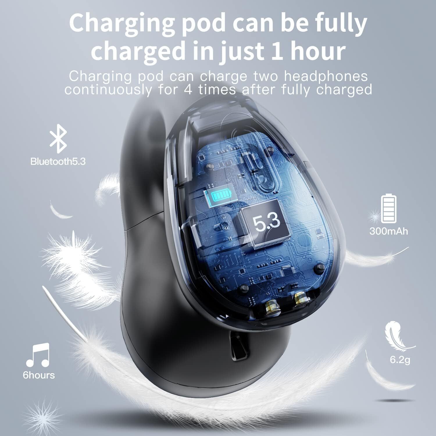 Bluetooth 5.3 Wireless Earbuds Ear Clip Bone Conduction Headphones Sport Headset