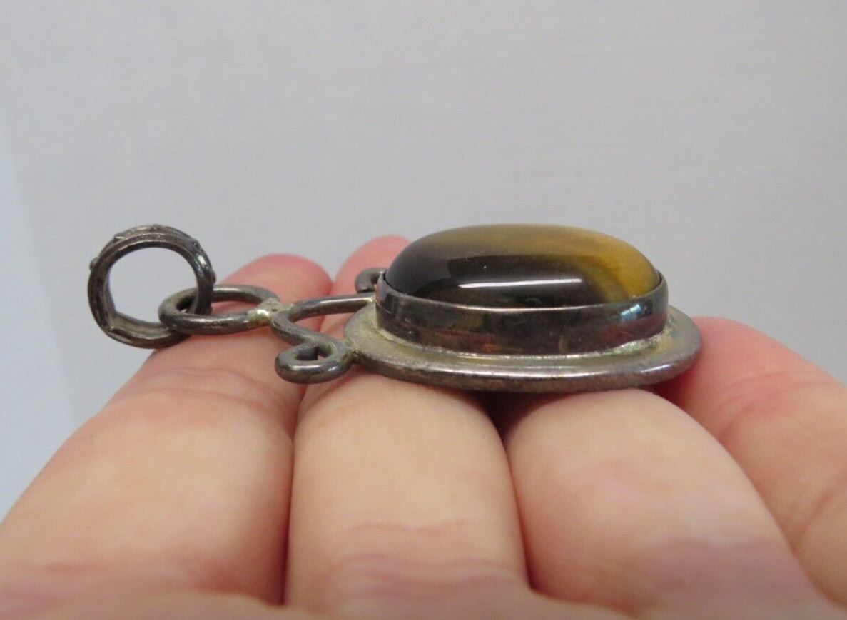 как выглядит TIGERS EYE Large Cabochon Sterling Silver Oval Pendant фото