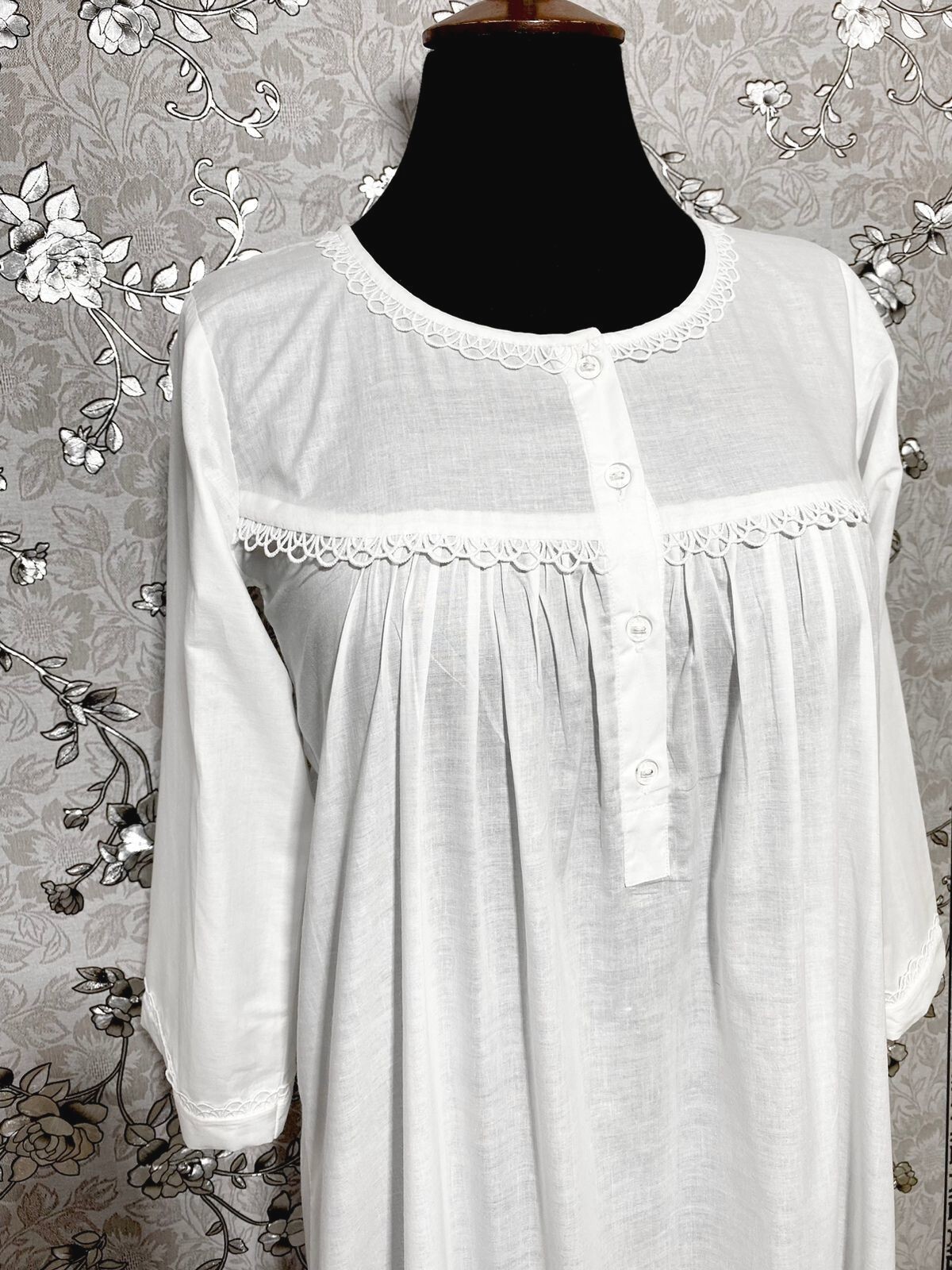 как выглядит SoieRose 100 White Cotton 3/4 sleeves Victorian Nightgown - SR-1016 фото