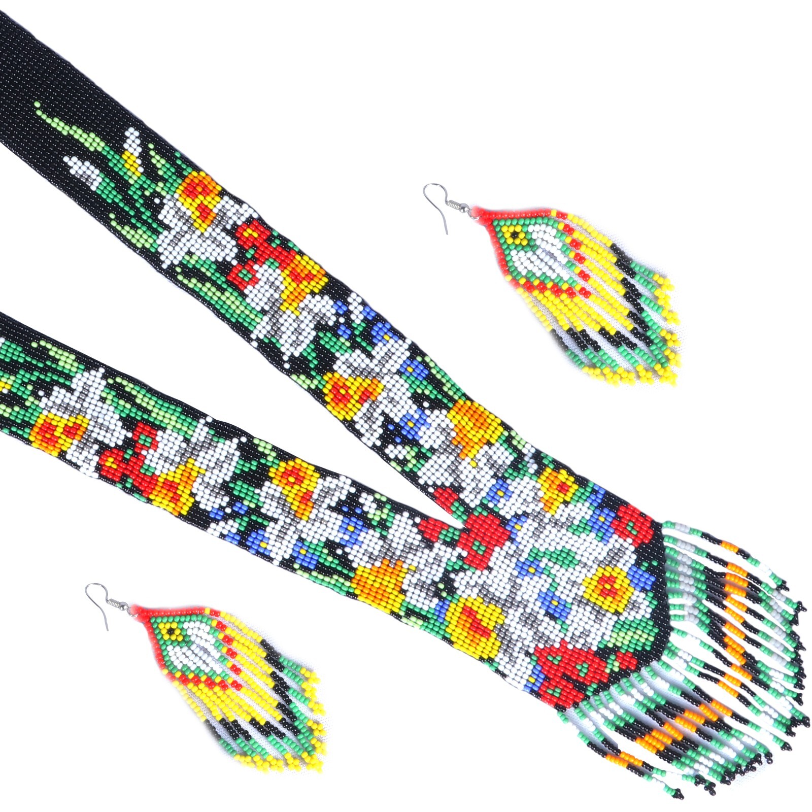 Handmade Colorful Seed Bead Necklace Earrings Set - Boho Chic Beaded Jewelry