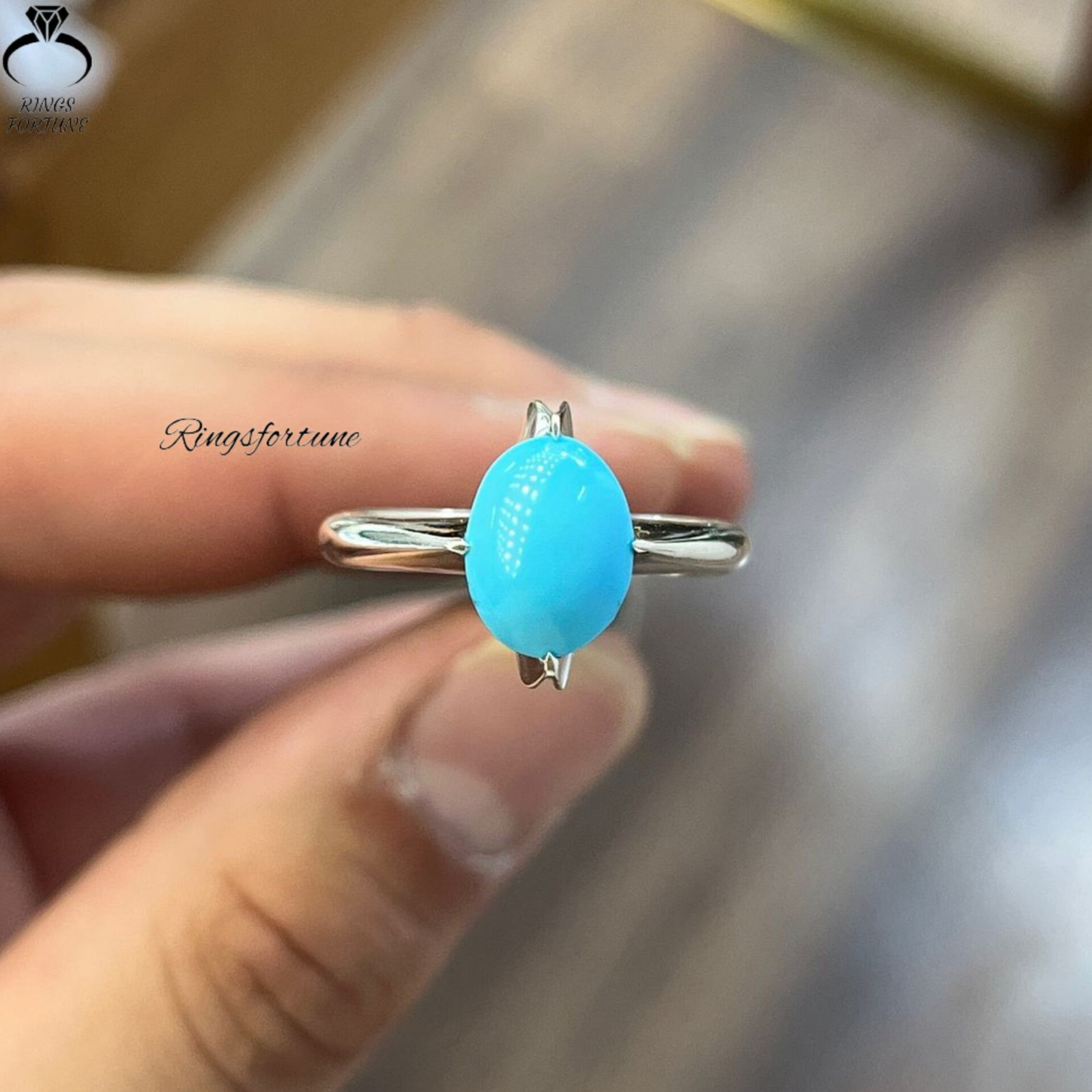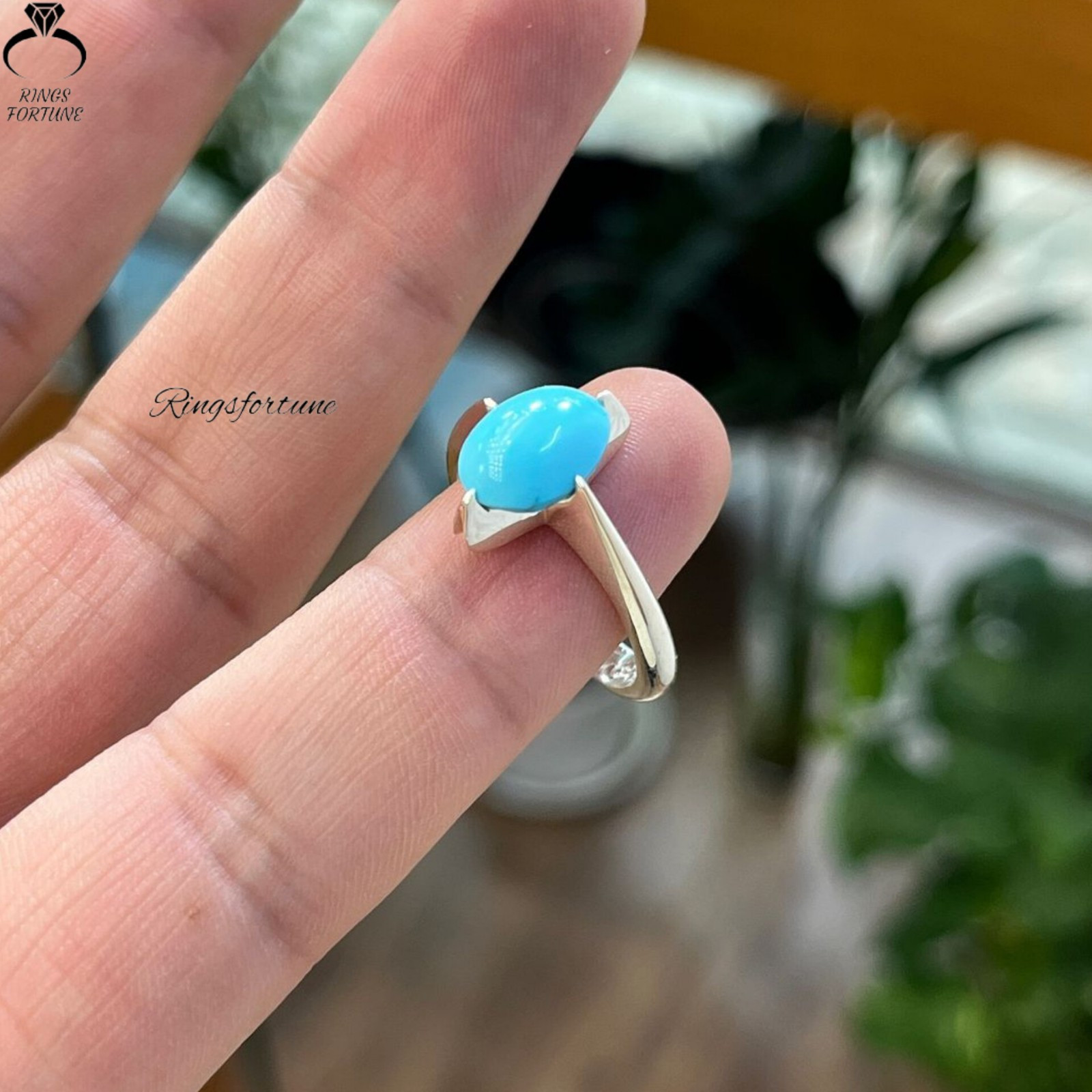 как выглядит Womens Turquoise Ring Natural Neyshabur Feroza 925 Silver Handmade Jewelry фото