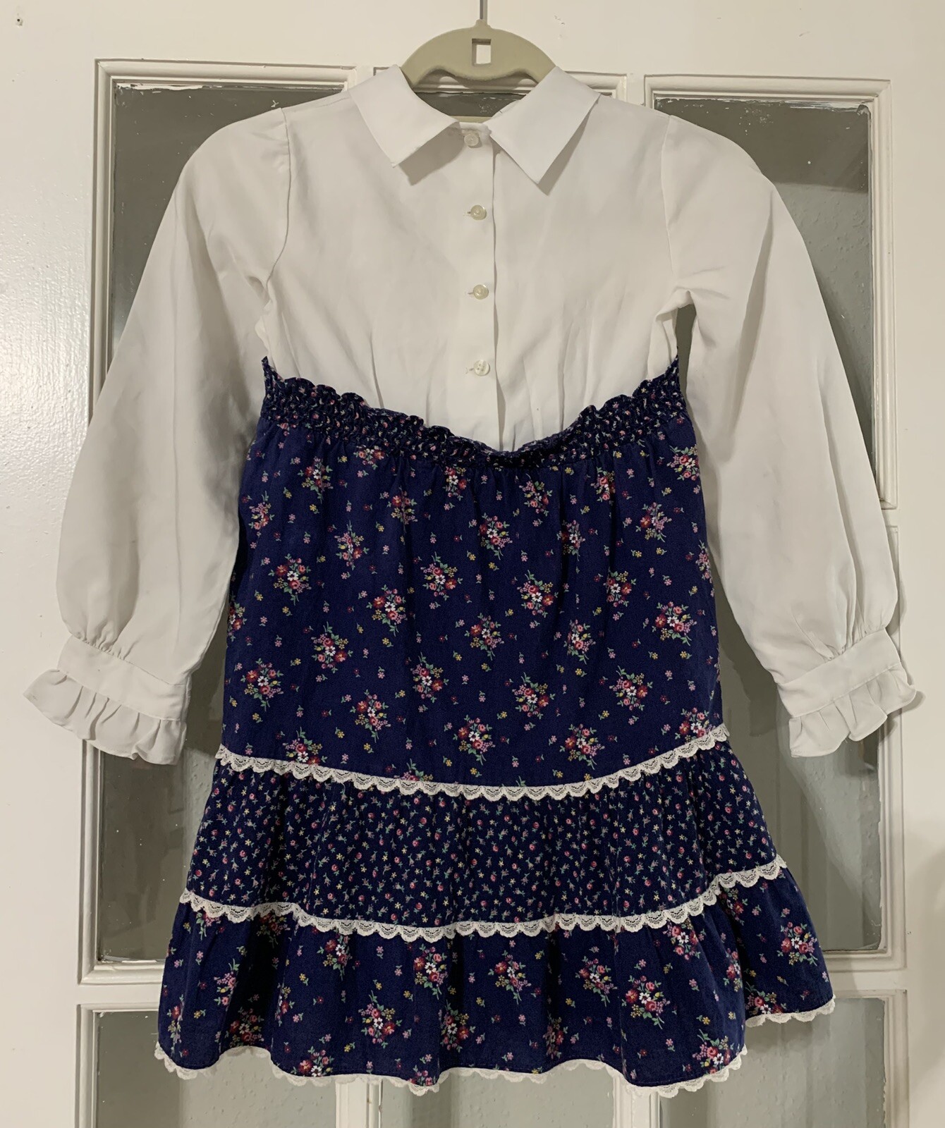 как выглядит JCPenney Vtg 70-80 s Little Girls Blue Floral Ruffles Dress Size 8 фото