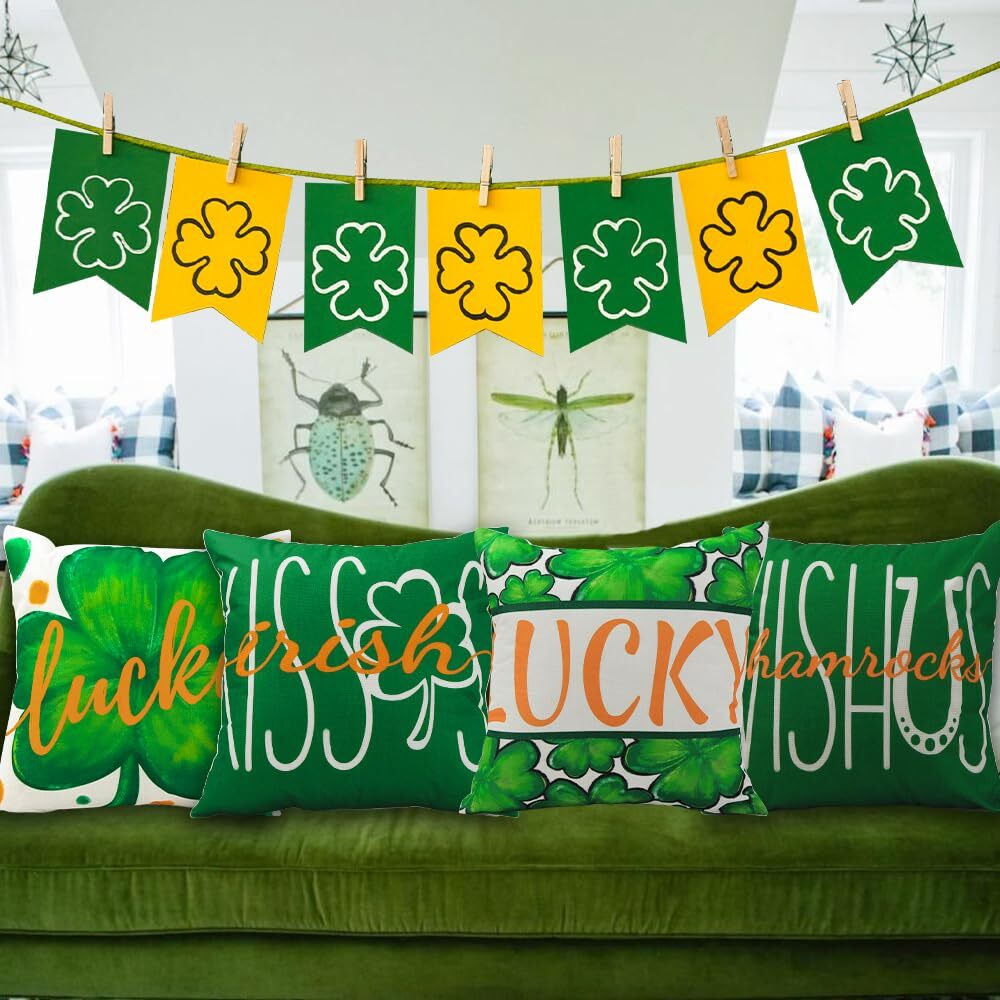 4Pk St. Patrick's Day Pillow Covers 18x18 Inch Shamrock Decorative Cushion Case