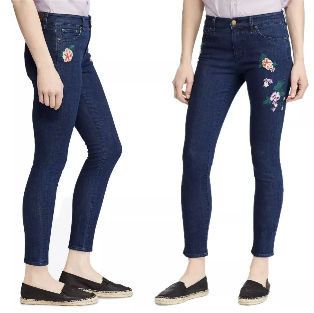 LAUREN RALPH LAUREN Jeans Women s 14 Cropped Embroidered Skinny Ankle Pants