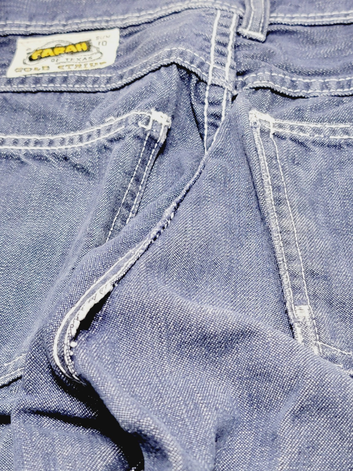 как выглядит Vintage 50s Farah Of Texas Gold Strikes Knees Patch Cowboy USA Jeans Kids Sz 10 фото