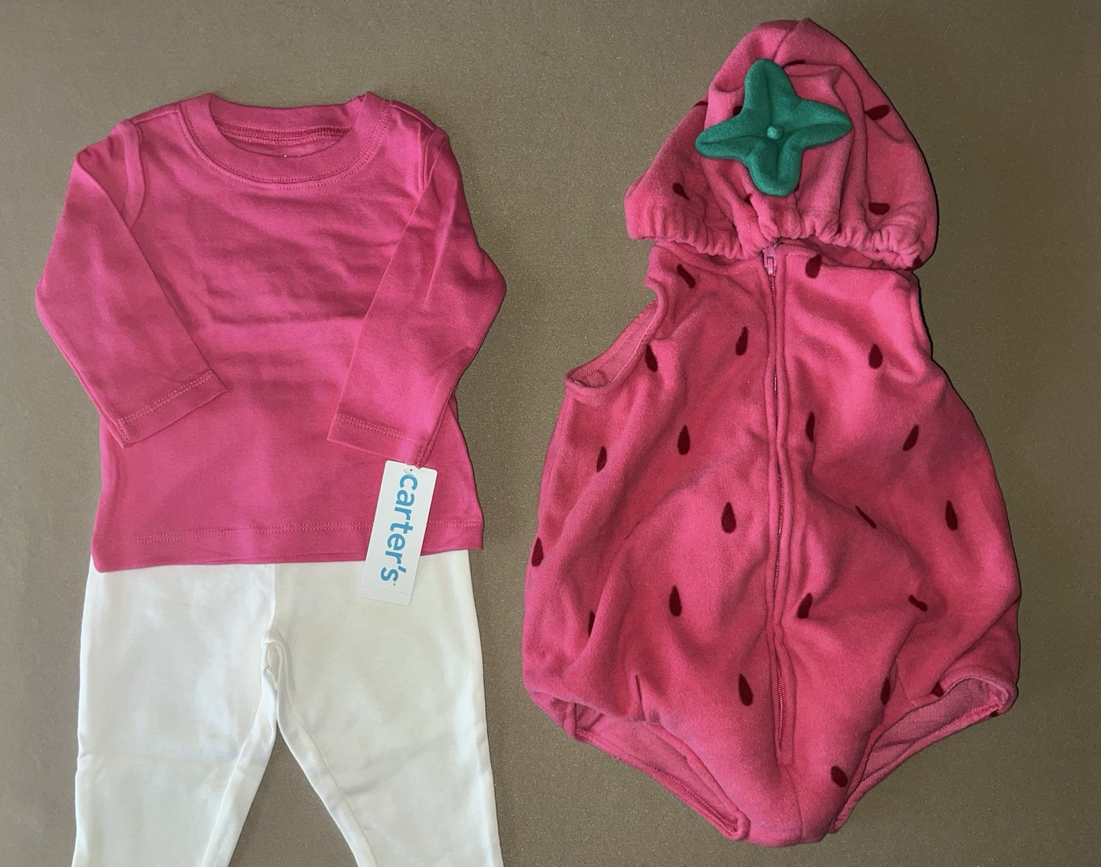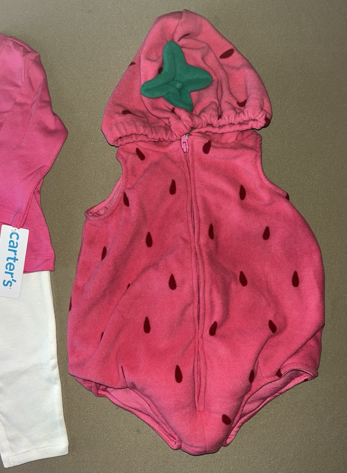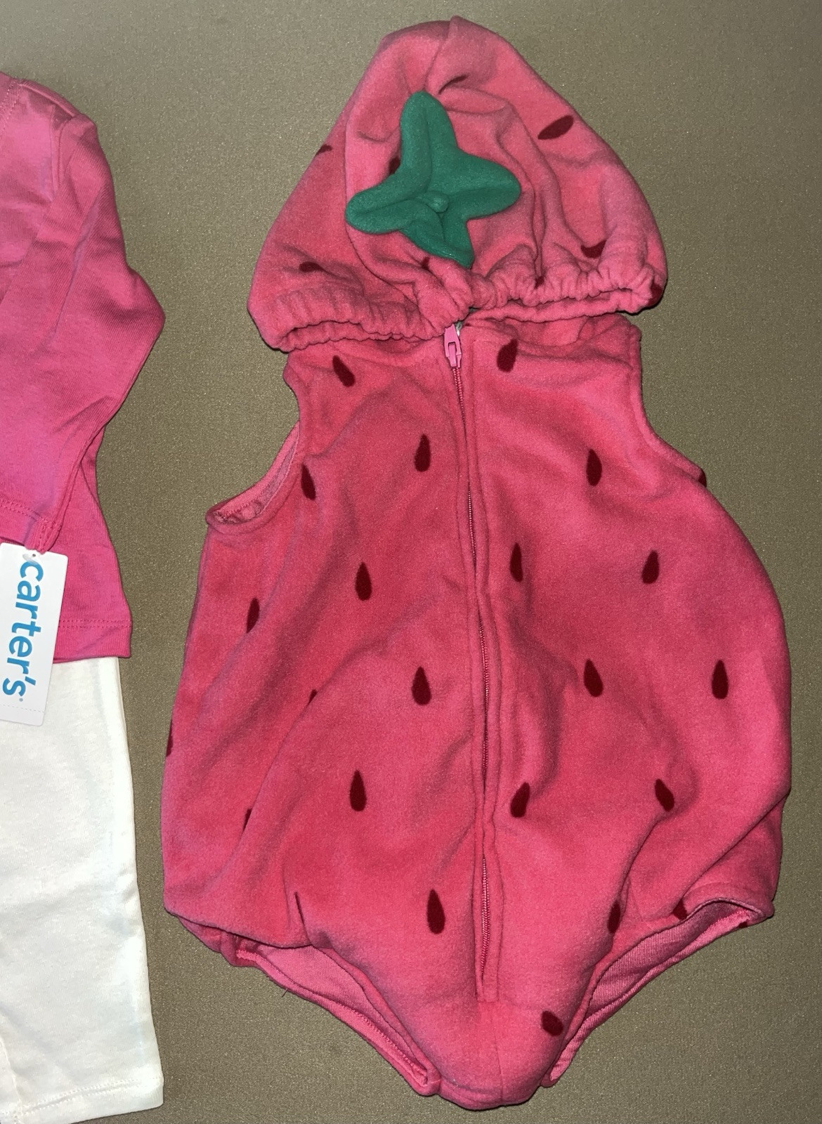 Carter s Baby Girls 3-6 Mos 3 Pc Costume Outfit Top, Pants Strawberry Vest New