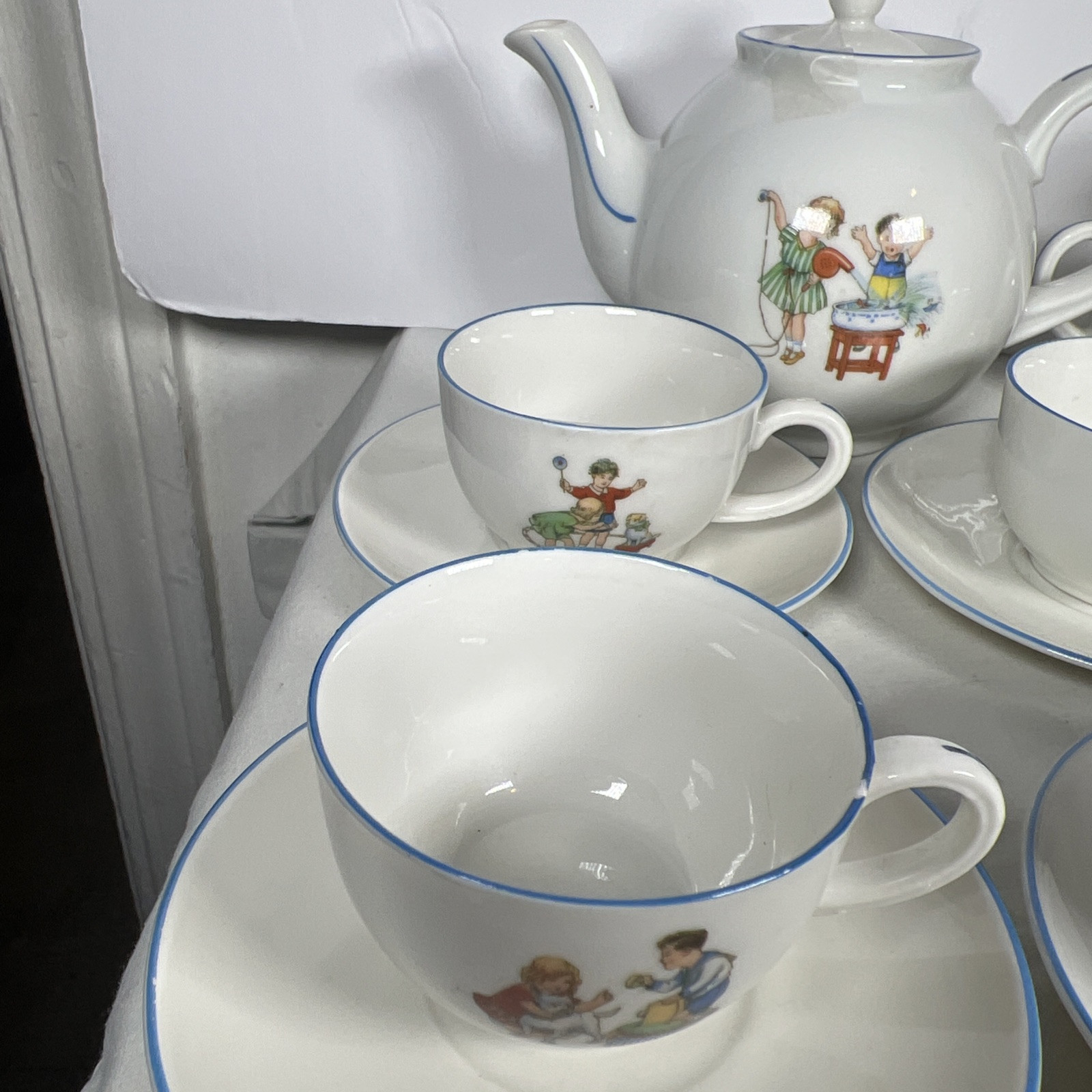 как выглядит Vintage Childrens Tea Cup Set 4 Cups Saucers Kettle Sugar Milk Great Cond. фото