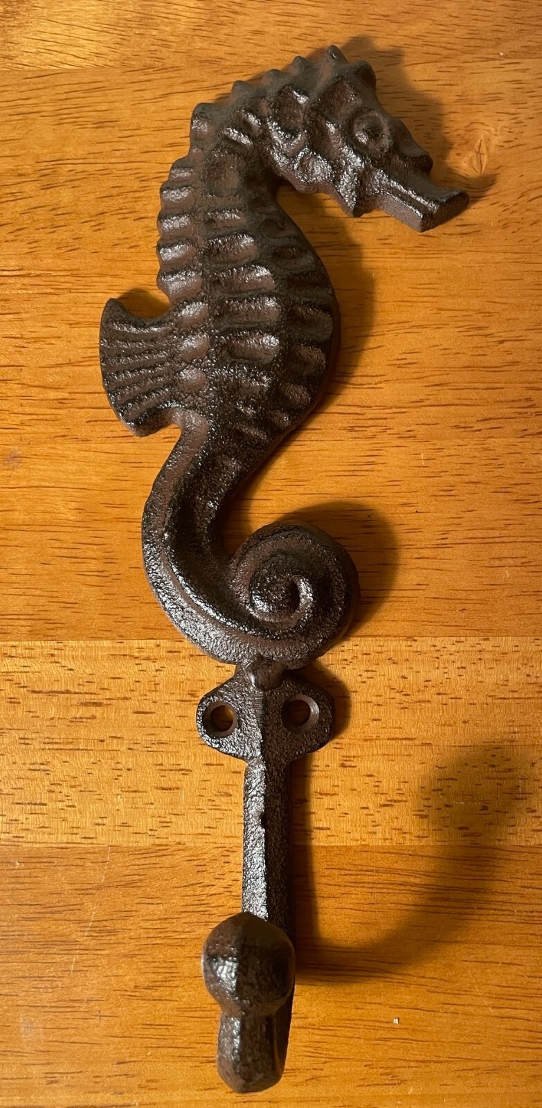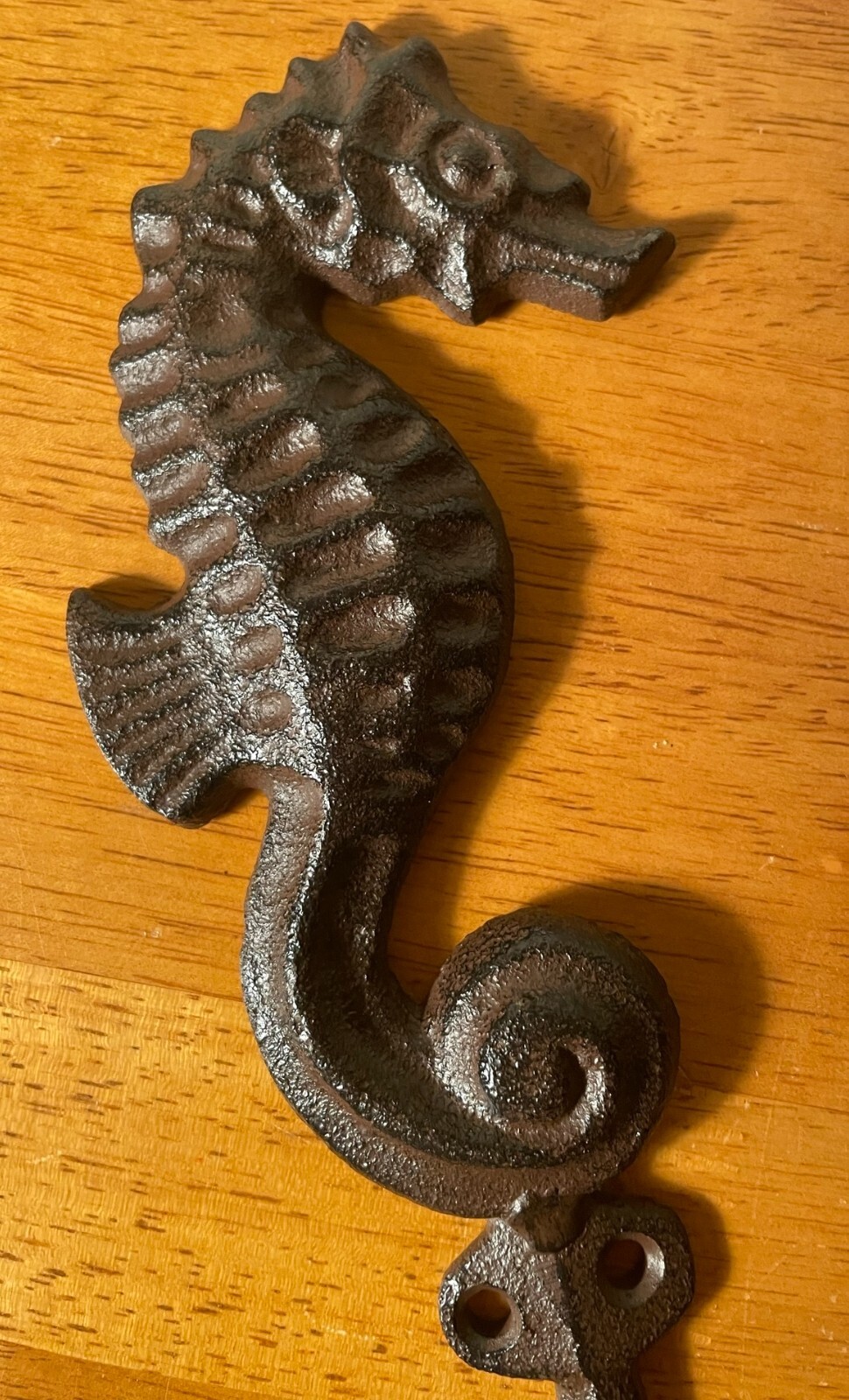 как выглядит Seahorse Wall Hook Cast Iron Nautical Beach House Coastal Rustic Towel Hanger фото