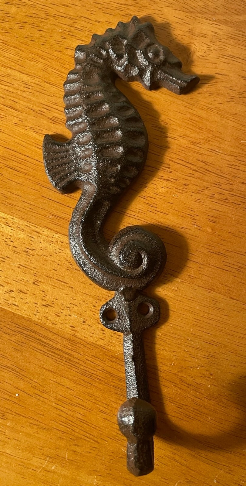 • Seahorse Wall Hook Cast Iron Nautical Beach House Coastal Rustic Towel Hanger