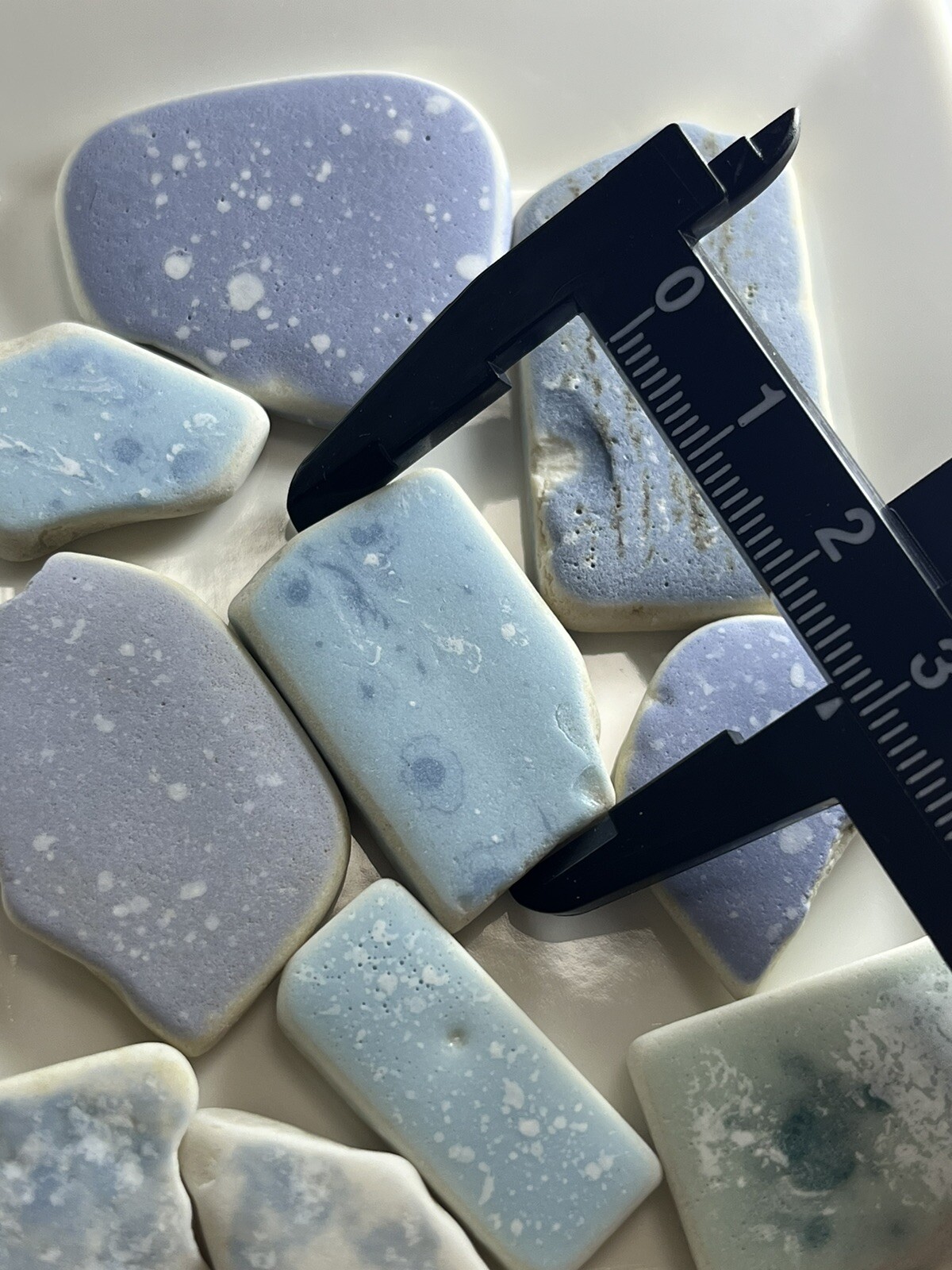japanese sea glass Surf-Tumbled pottery Tile speckles blue color mix