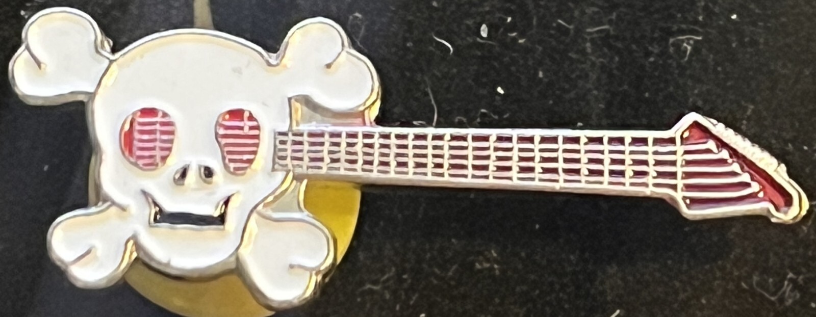 Red Eyes SKULL CROSSBONES Collectible Mini Guitar Enamel Lapel PIN 1.25 Long