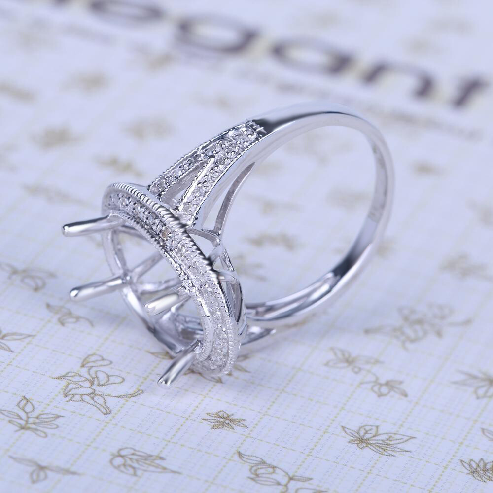 Oval Cut Semi Mount Sterling Silver 925 Prong Setting Engagement Wedding Ring