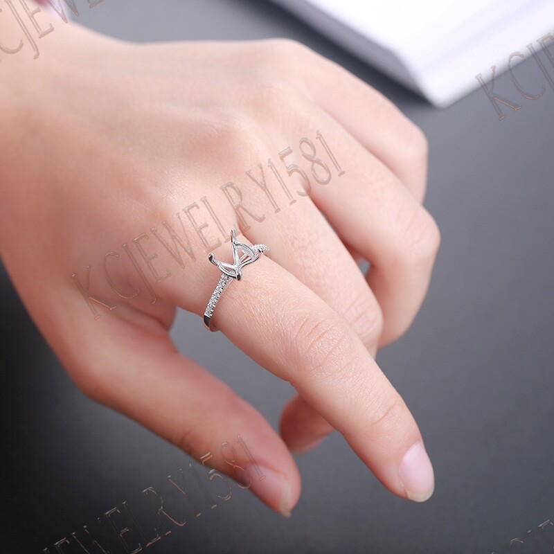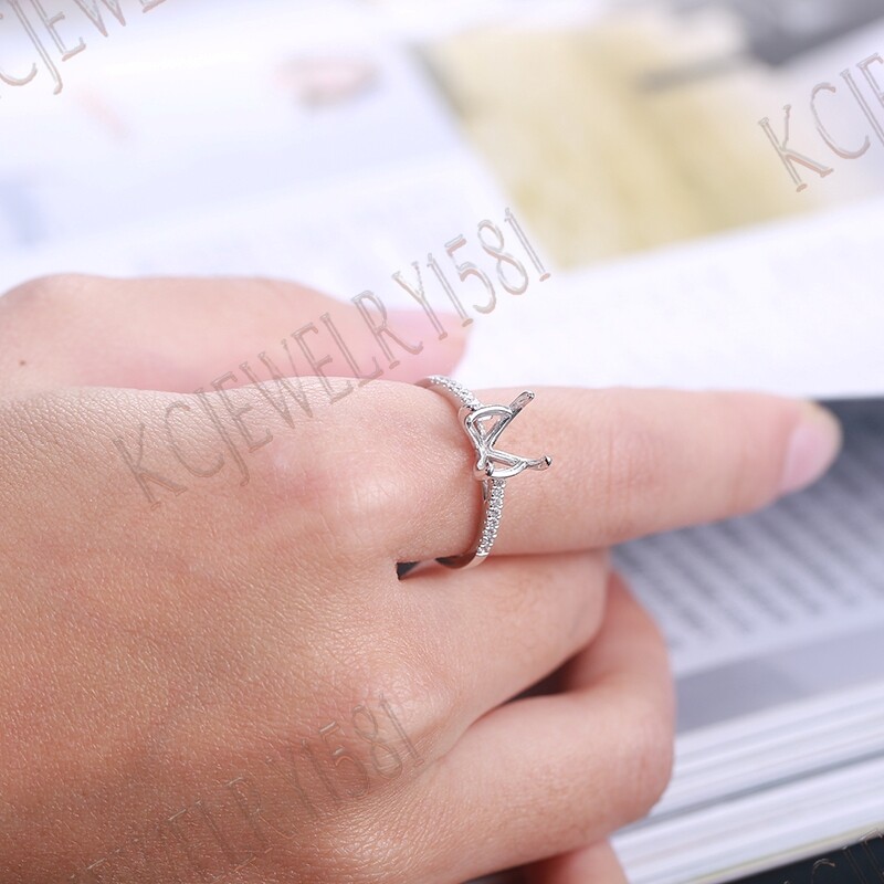 как выглядит Sterling Silver 0.24ct Cubic Zirconia Engagement Ladys Semi Mount 9mm Round Ring фото