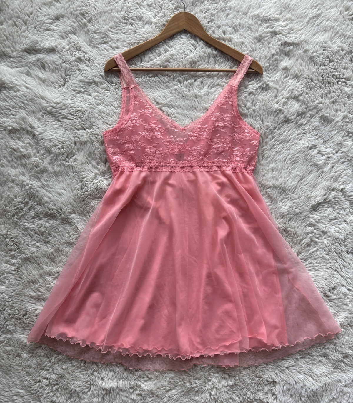 как выглядит VTG 60s Pink 2-piece Peignoir Set Baby Doll Nightgown Mid-Century Chiffon Lace M фото