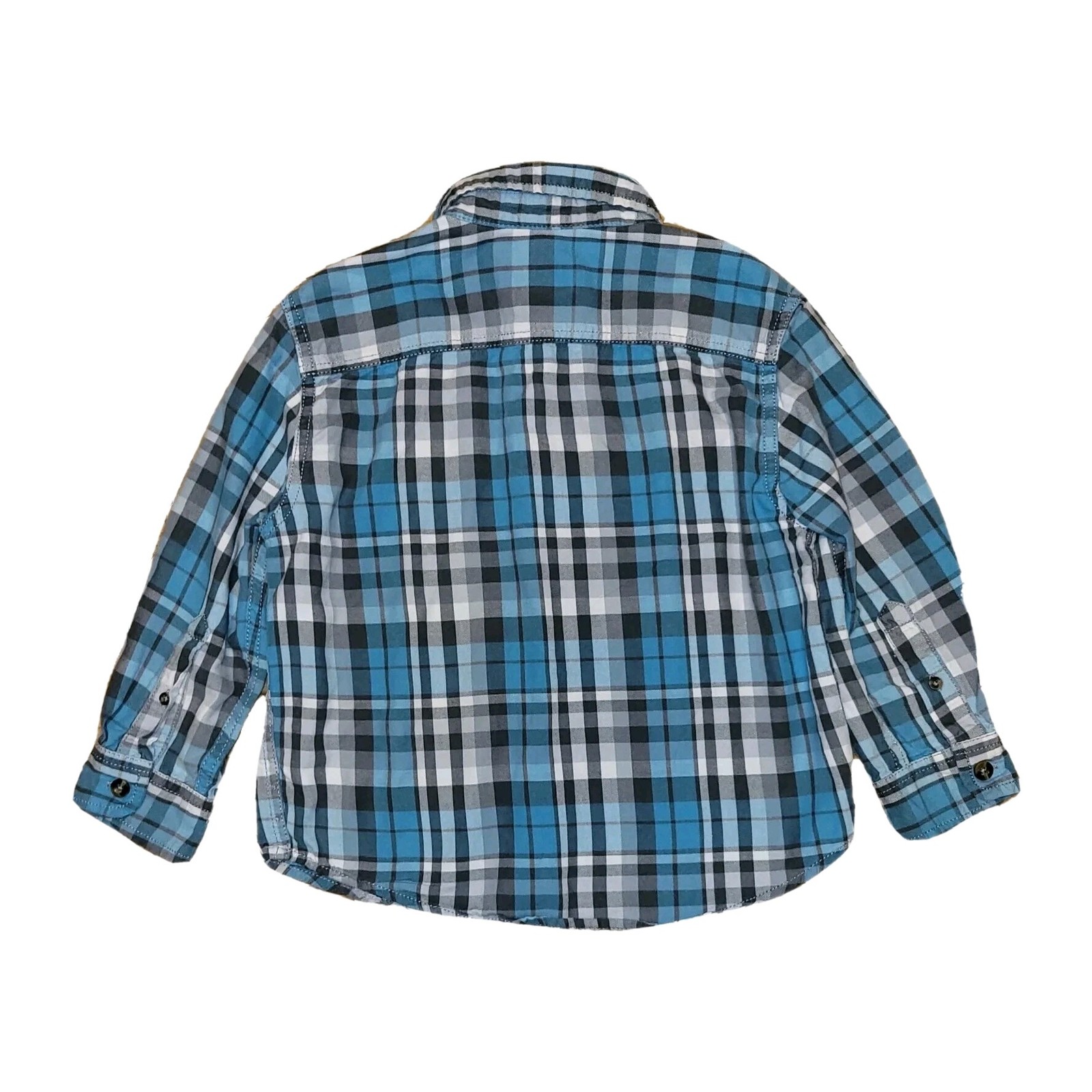 4T Boys Adjustable Waist Jeans and Blue Plaid Button Down Callored Shirt Outfit