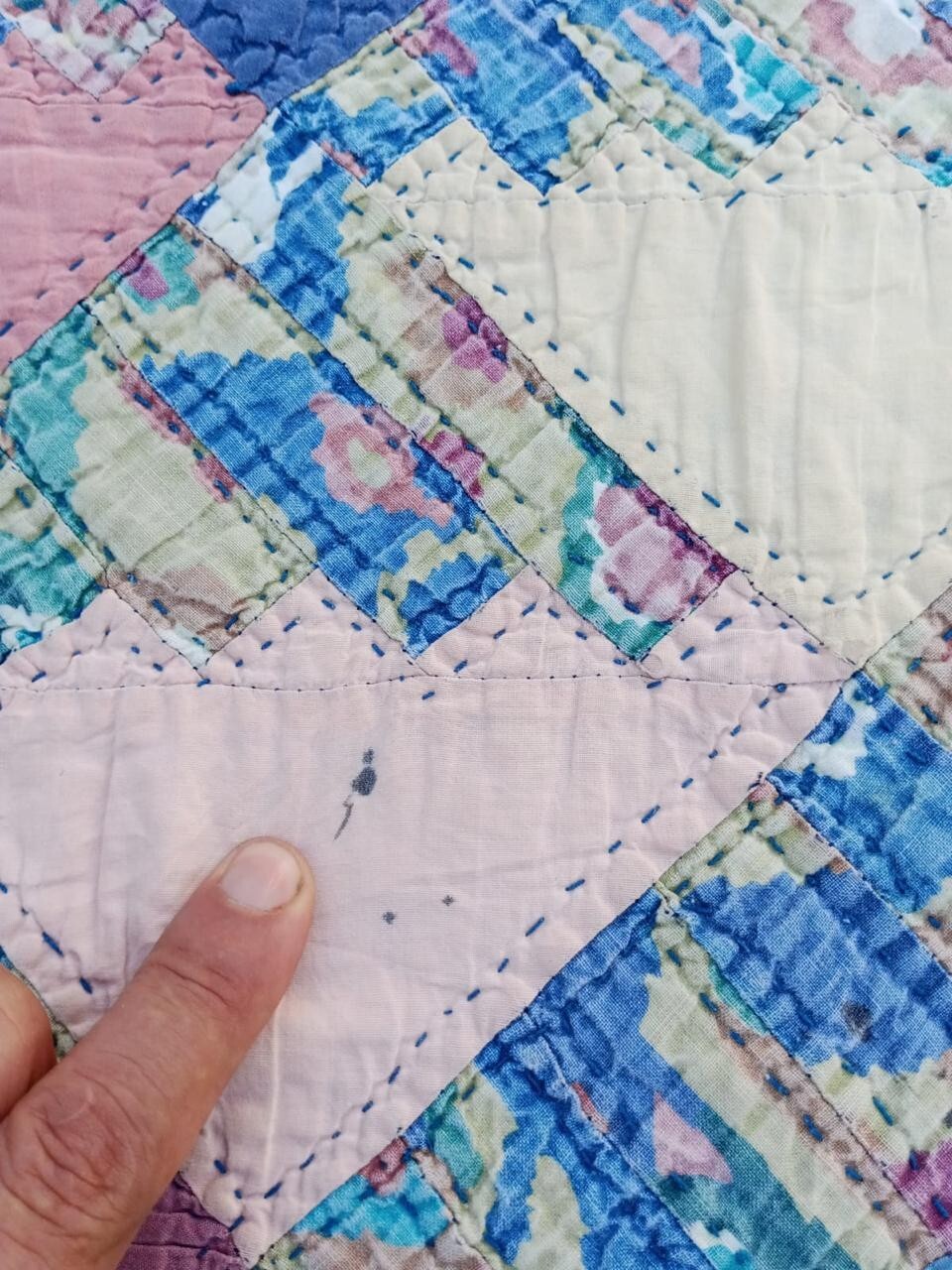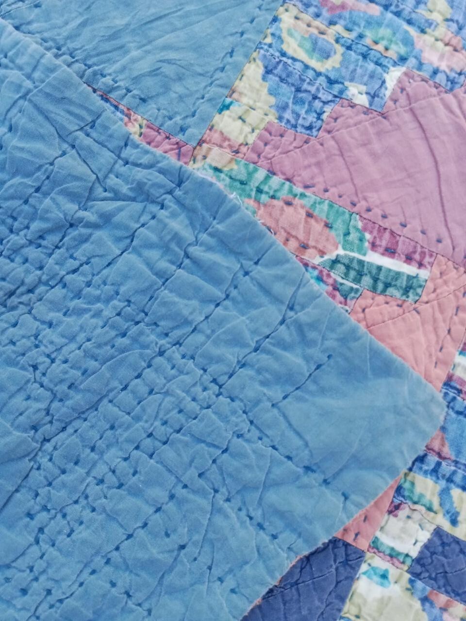 Vintage Beautiful Quilt Different Pieces Hand Woven size95x81 inches