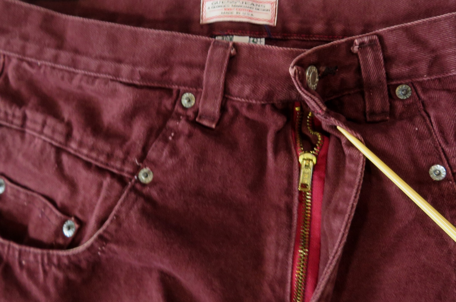 Guess Jeans Denim Pants Vintage 1980's Maroon USA George Marciano Altered