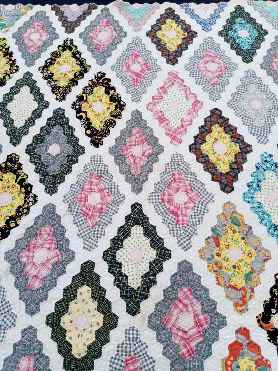 Vintage Beautiful Quilt Different Pieces Hand Woven size 67x 58 inches