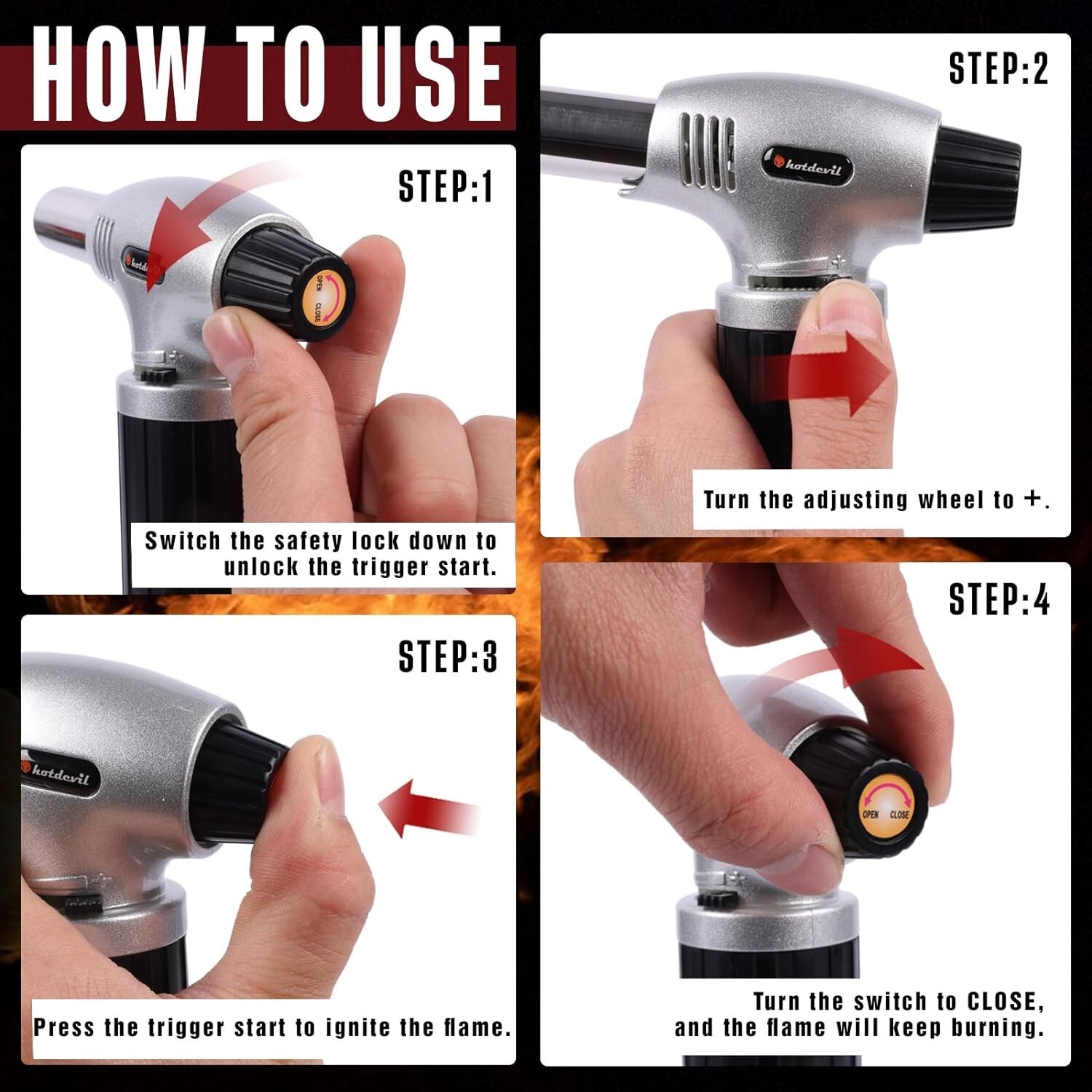 как выглядит Hotdevil Butane Torch 10g Refillable Cooking Kitchen Torch Adjustable Flame фото