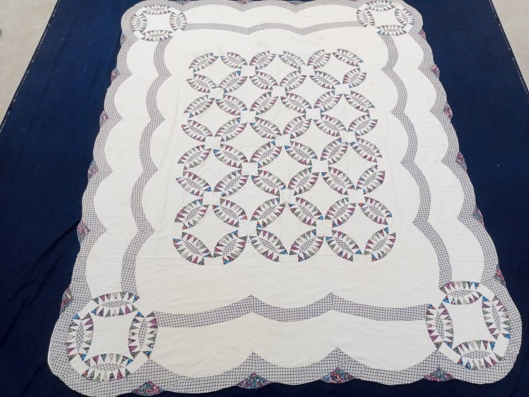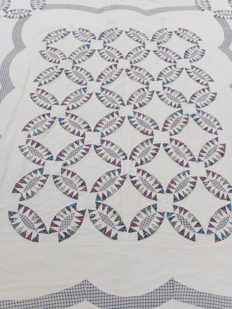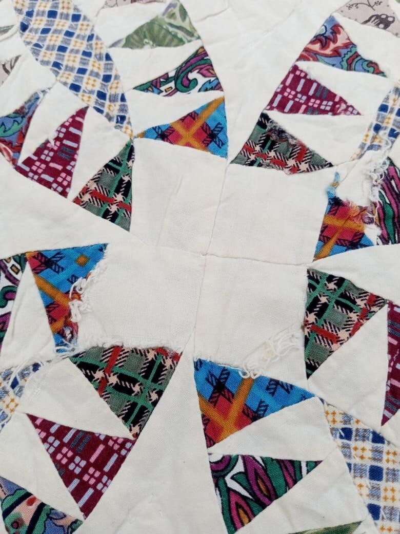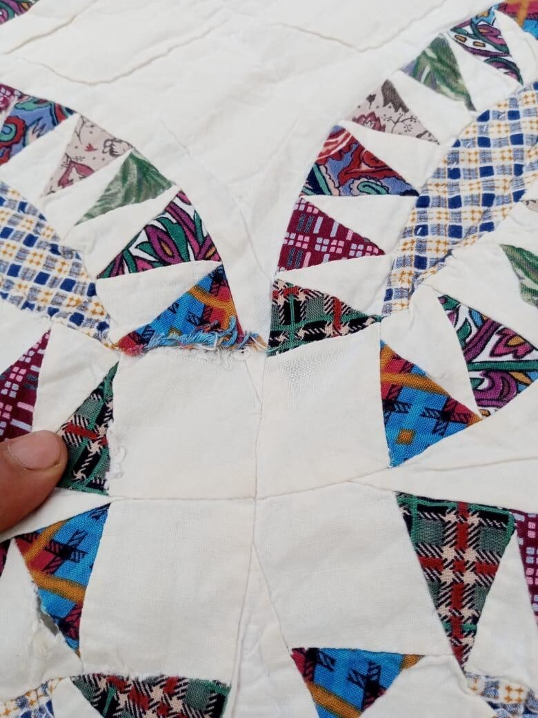 • Vintage Beautiful Quilt Different Pieces Hand Woven size 80x64 inches