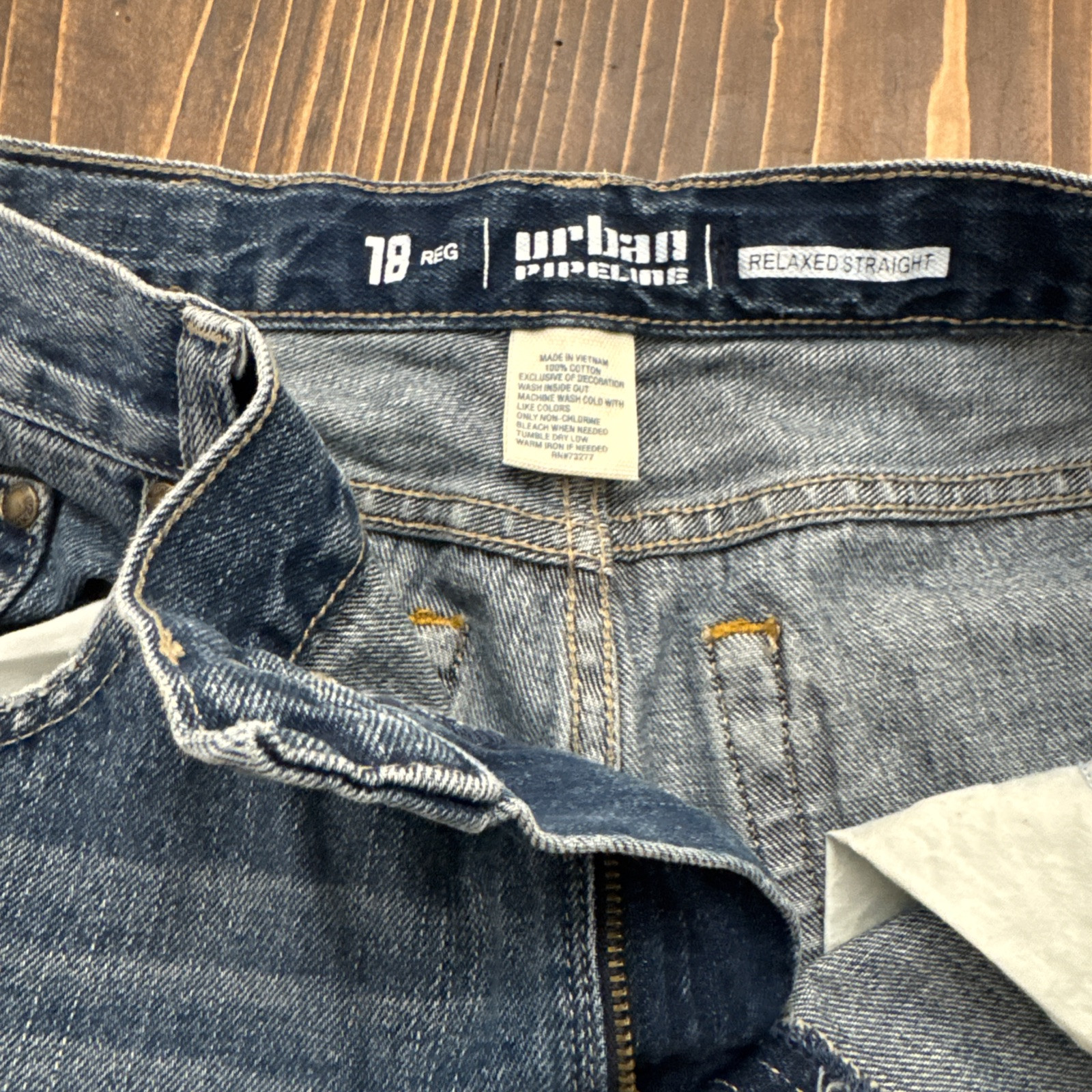 как выглядит Urban Pipeline Relaxed Straight Leg Blue Denim 5 Pocket Jeans Size 18 фото
