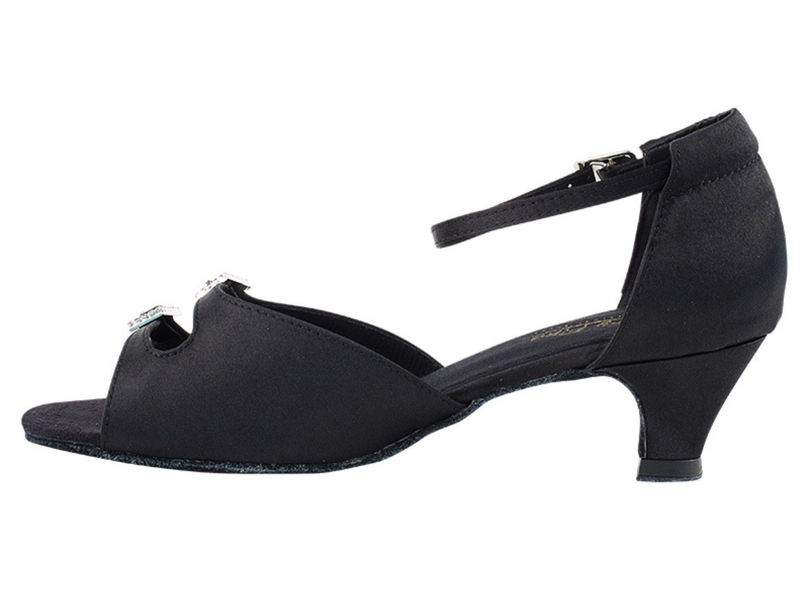 1620 Black Satin Swing Salsa Latin Dance Shoes low heel 1.3 Size 7 Very fine