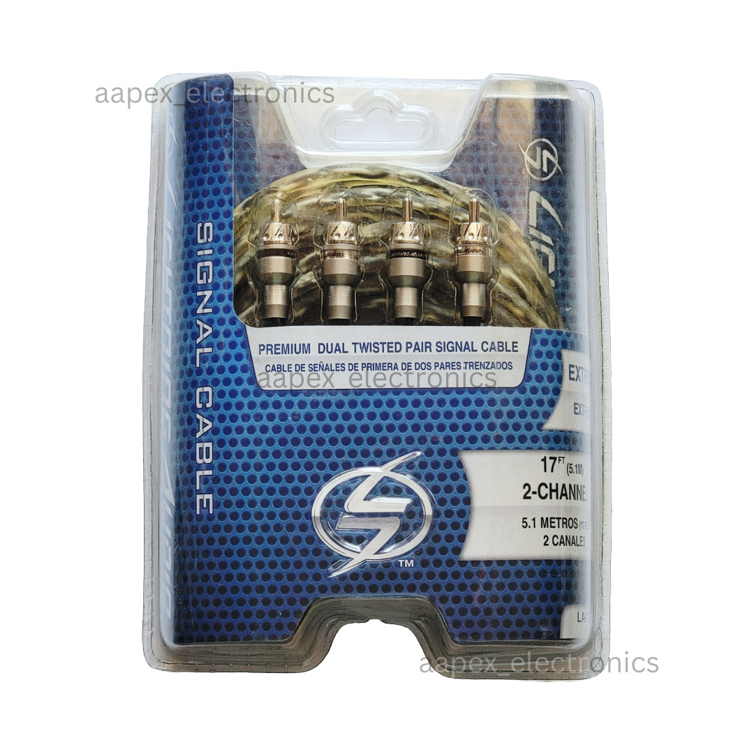 17ft Clear Twisted Pair 2 Channel RCA Audio Cable for Car Amplifier, Stereo