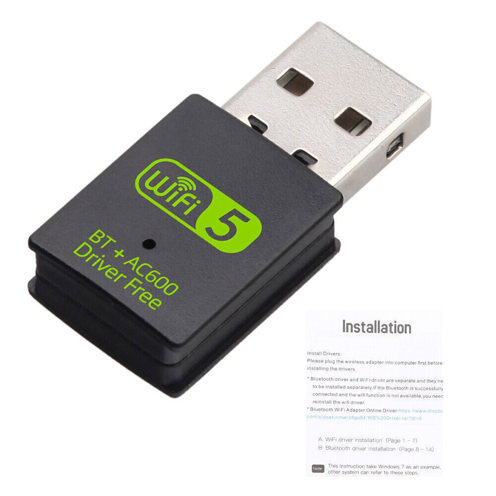 USB WiFi Bluetooth Adapter 600Mbps Dual Band 2.4/5Ghz Wireless Network Receiver