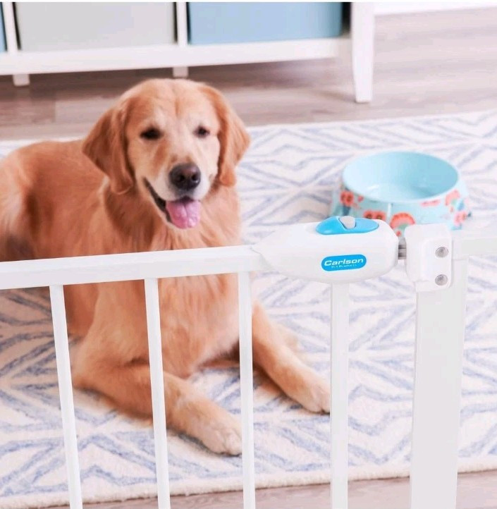 как выглядит Carlson Extra Wide White Walk Through Pet Gate with Small Pet Door фото