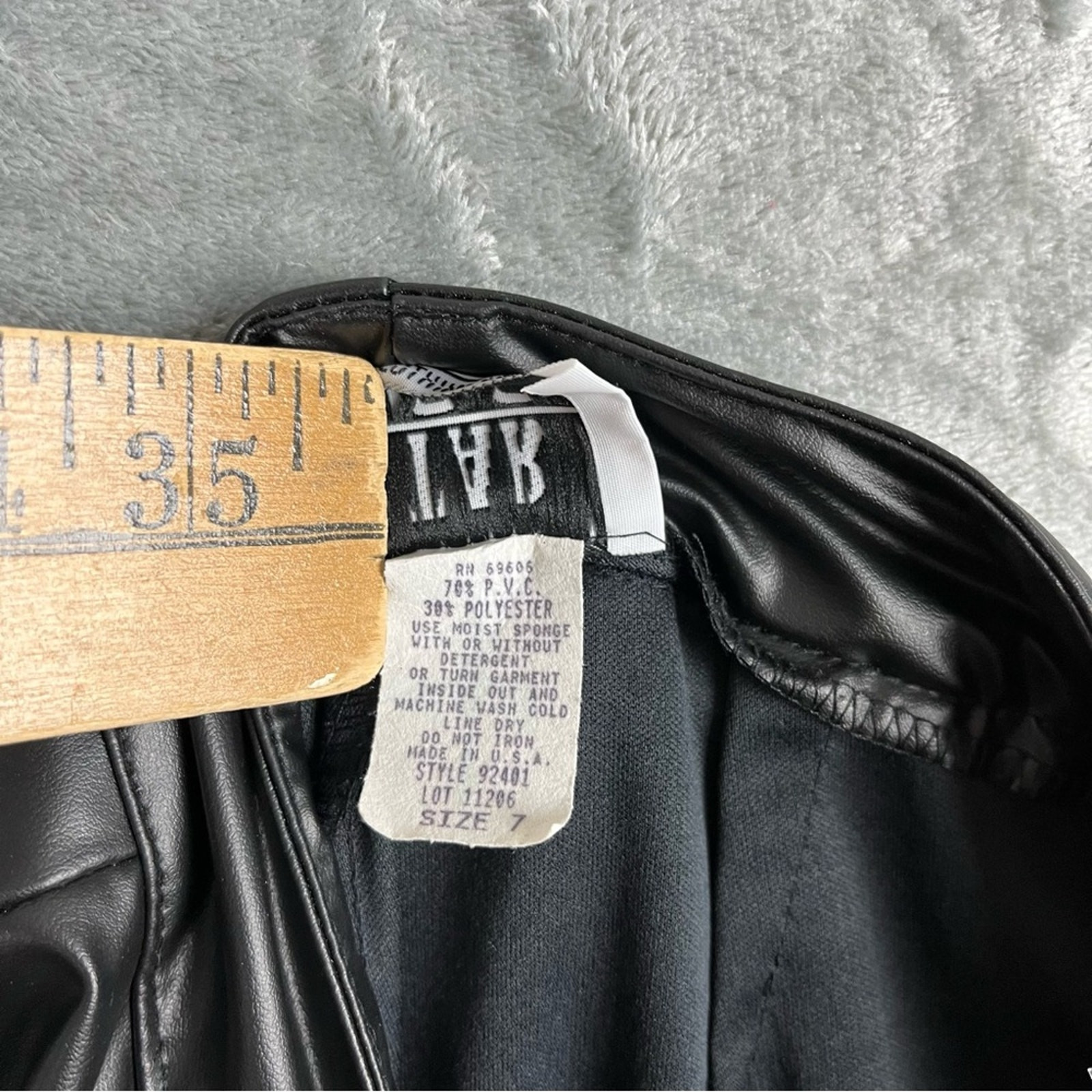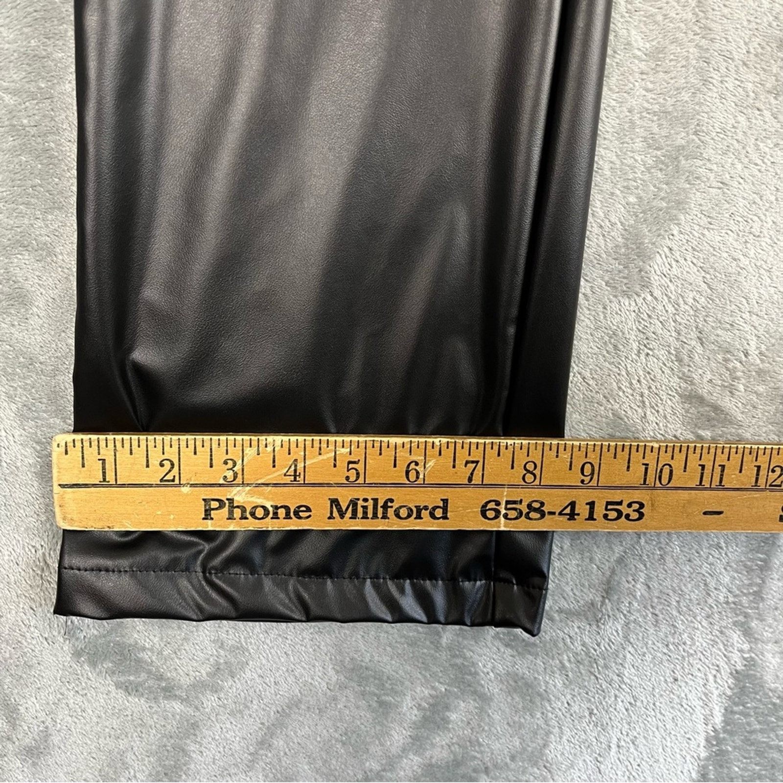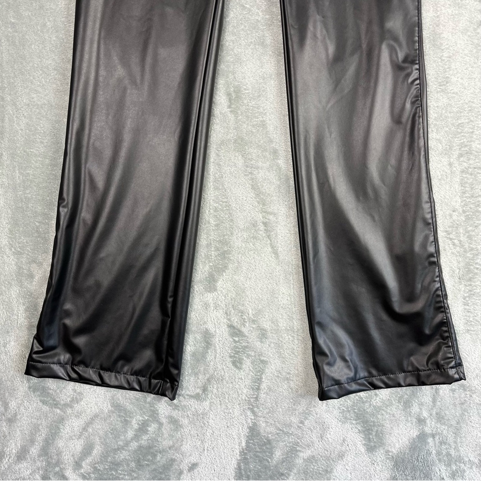 как выглядит Vintage Black Pleather Pants Size 7 90s Y2K Faux Leather Gothic Bootcut Grunge фото
