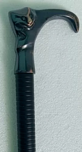как выглядит Stainless Steel Tactical Walking Stick Cane Antique Black Brass Cat Head Handle фото
