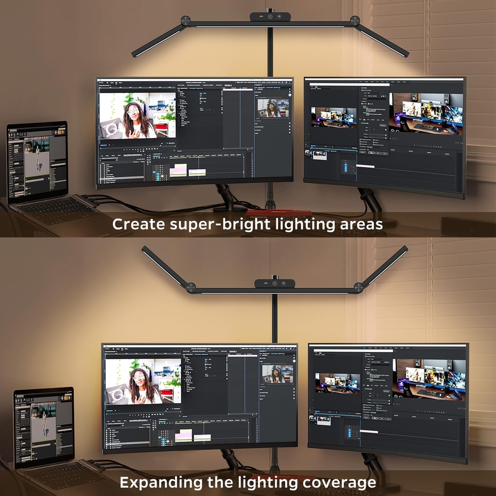 LED Desk Lamp with Clamp, 24W Architect Light, Auto-Dimming, Stepless Brightn...