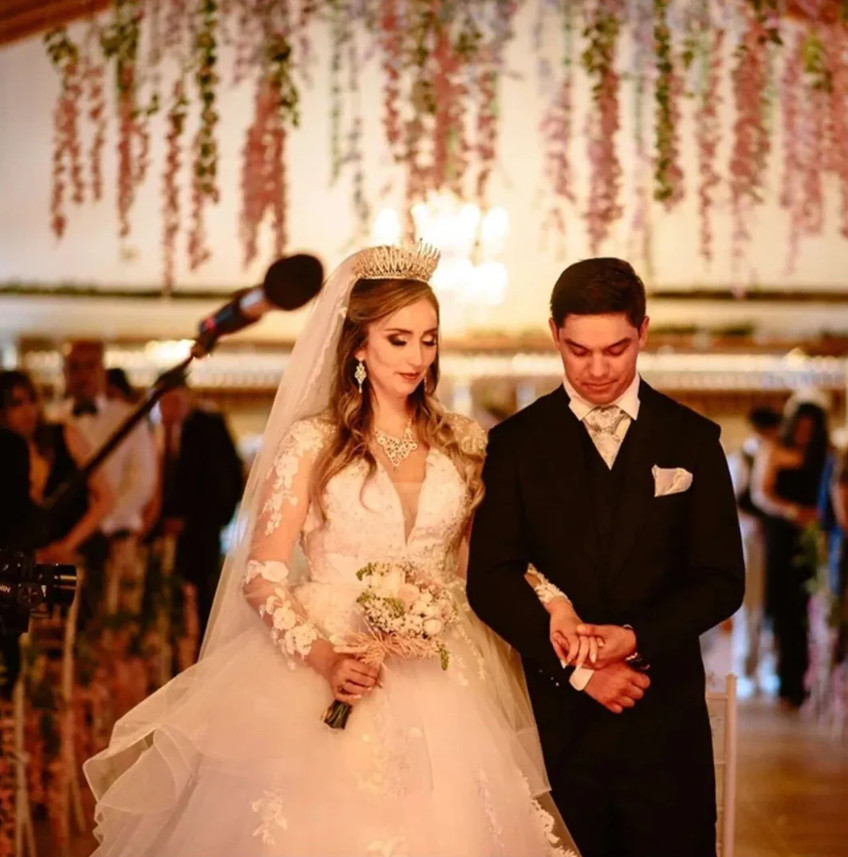 как выглядит Champagne Appliques Wedding Dresses V Neck Lace Long Sleeves Tulle Bridal Gowns фото