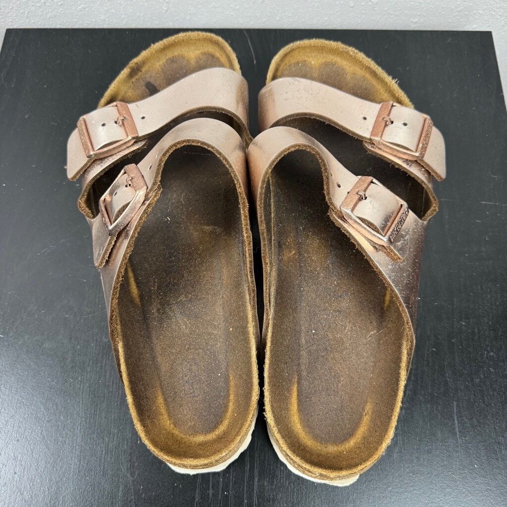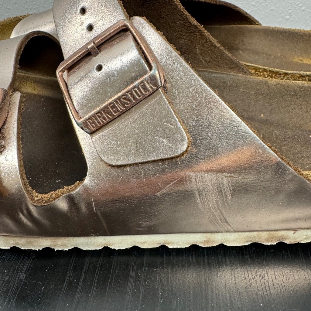 Birkenstock Arizona Sandals Womens 10 Rose Gold Metallic Birko-Flor Big Buckle