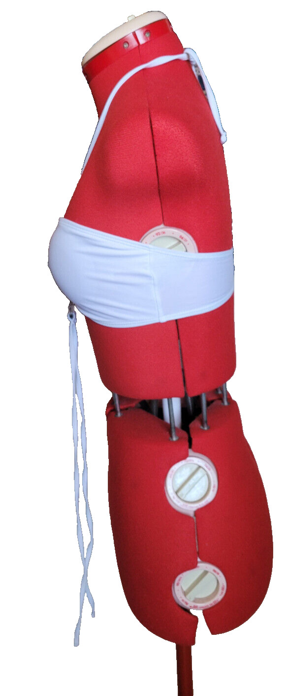 White Blue/Gold Rings Halter String Tie Removeable Pads Bikini Swimsuit Top S