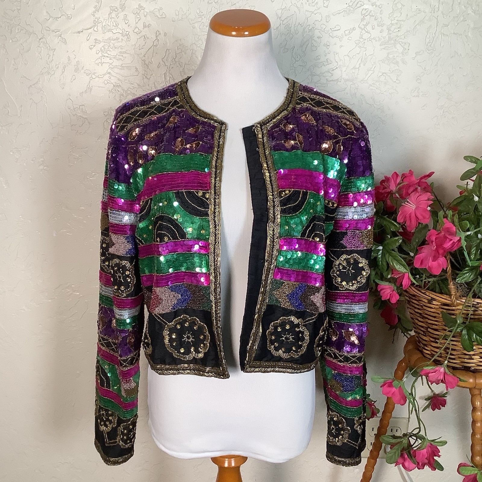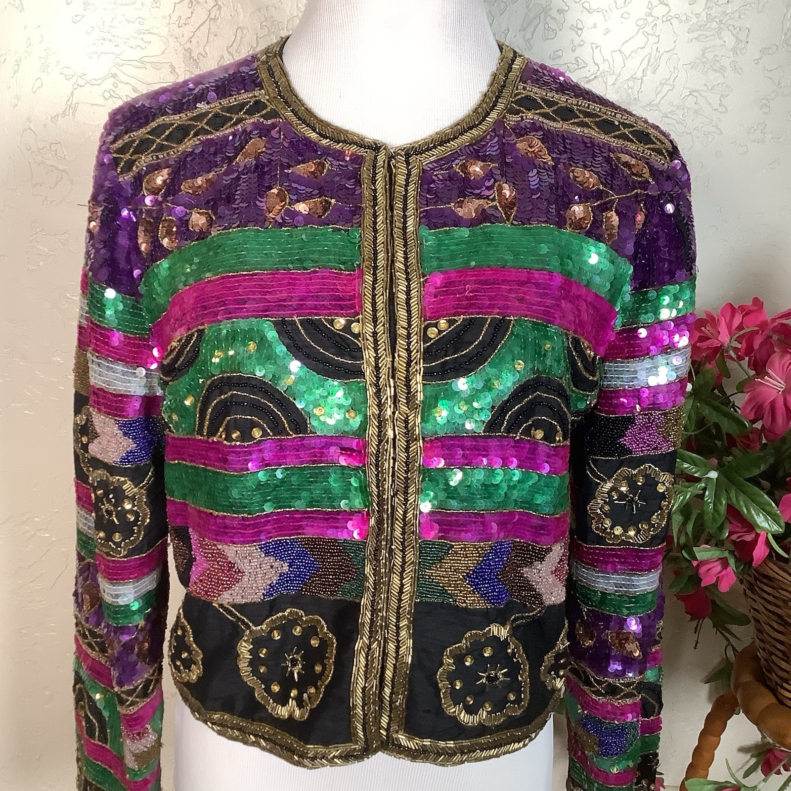 Vintage 1980s Laurence Kazar NY Silk Beaded Sequin Jacket