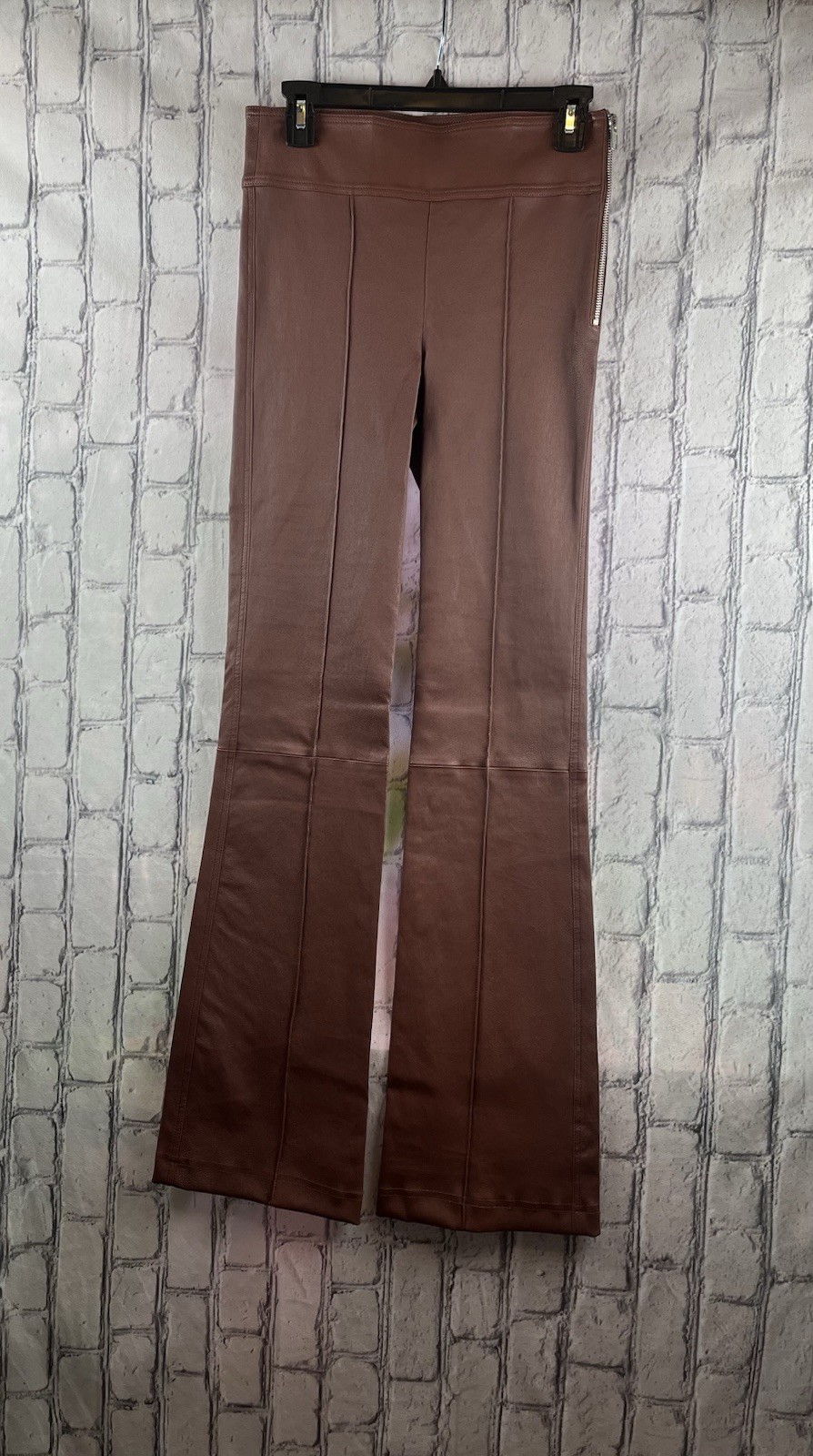 как выглядит HELMUT LANG Womens Leather Bootcut Trouser Pants Cinnamon Brown MSRP 1,095 фото