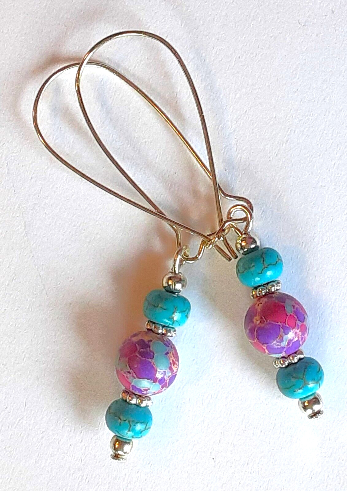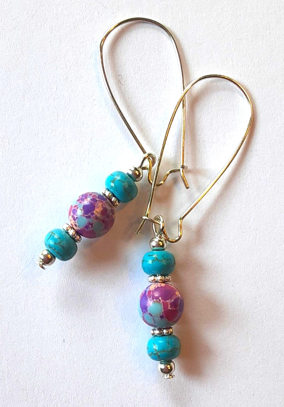 TURQUOISE MOSAIC HOWLITE earring SP Kidney wire artisan K2TA