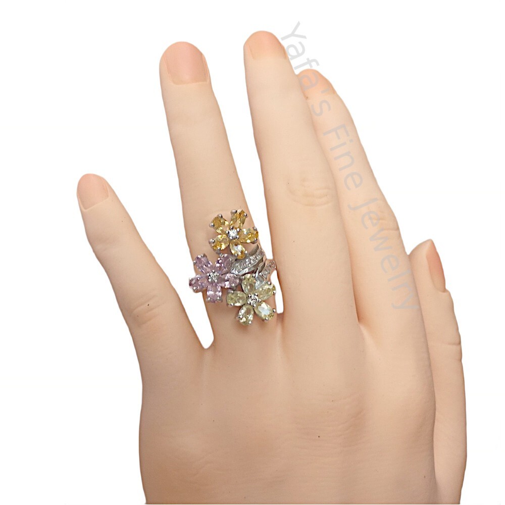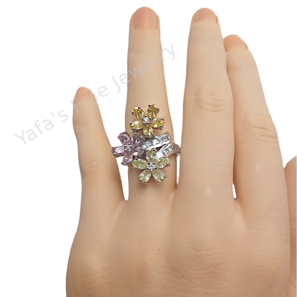 как выглядит Flower Ring Multi-Colorful Floral Petals Sterling Silver Rhodium Plated Size 6 фото