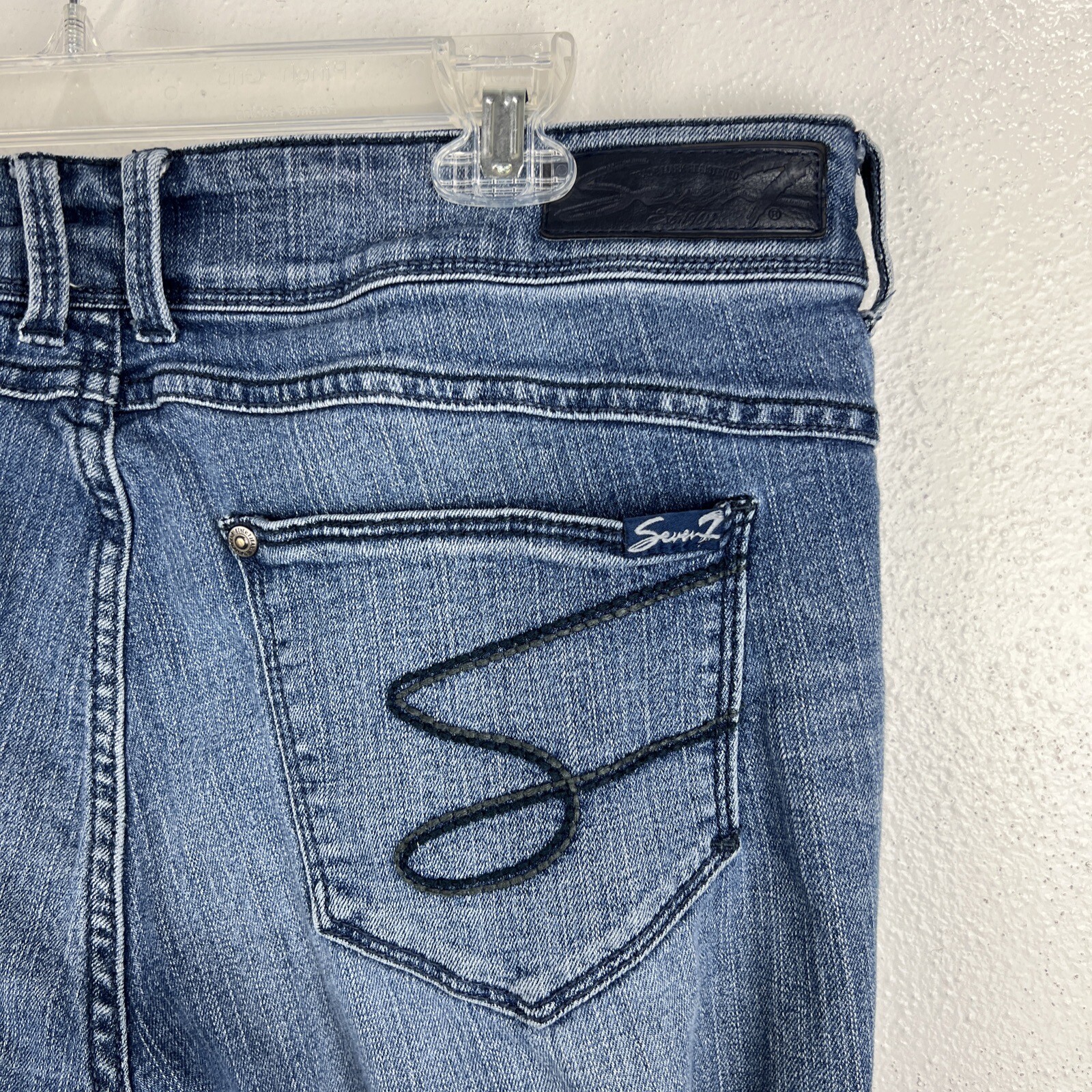 как выглядит Seven7 Jeans Women 12 Blue Denim Rocker Slim Jean Casual Bottoms фото