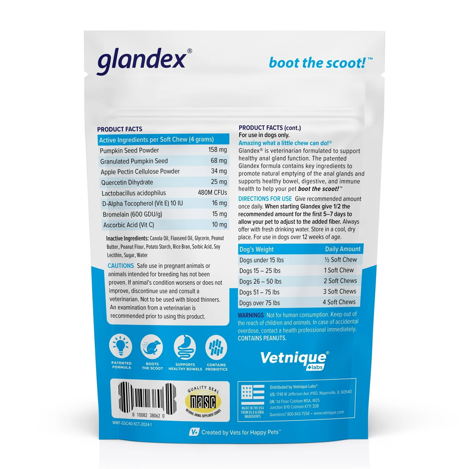 Glandex Digestive Health Anal Soft Chews for Dogs,Peanut Butter Flavored