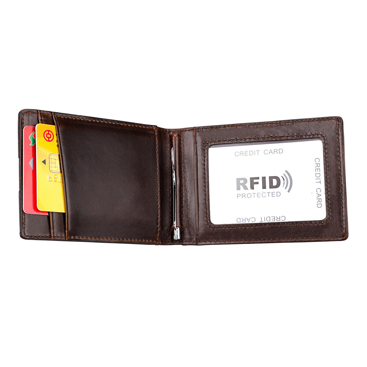 Men RFID-Blocking Slim Bifold Leather Card Holder Front Pocket Cash Clip Wallet