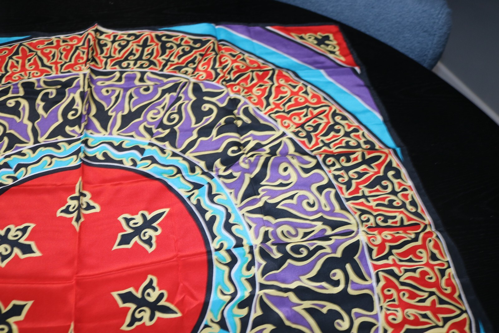 как выглядит Vintage 100 Silk Hand Rolled Square Scarf by Shirley - Bold Colors and Design фото