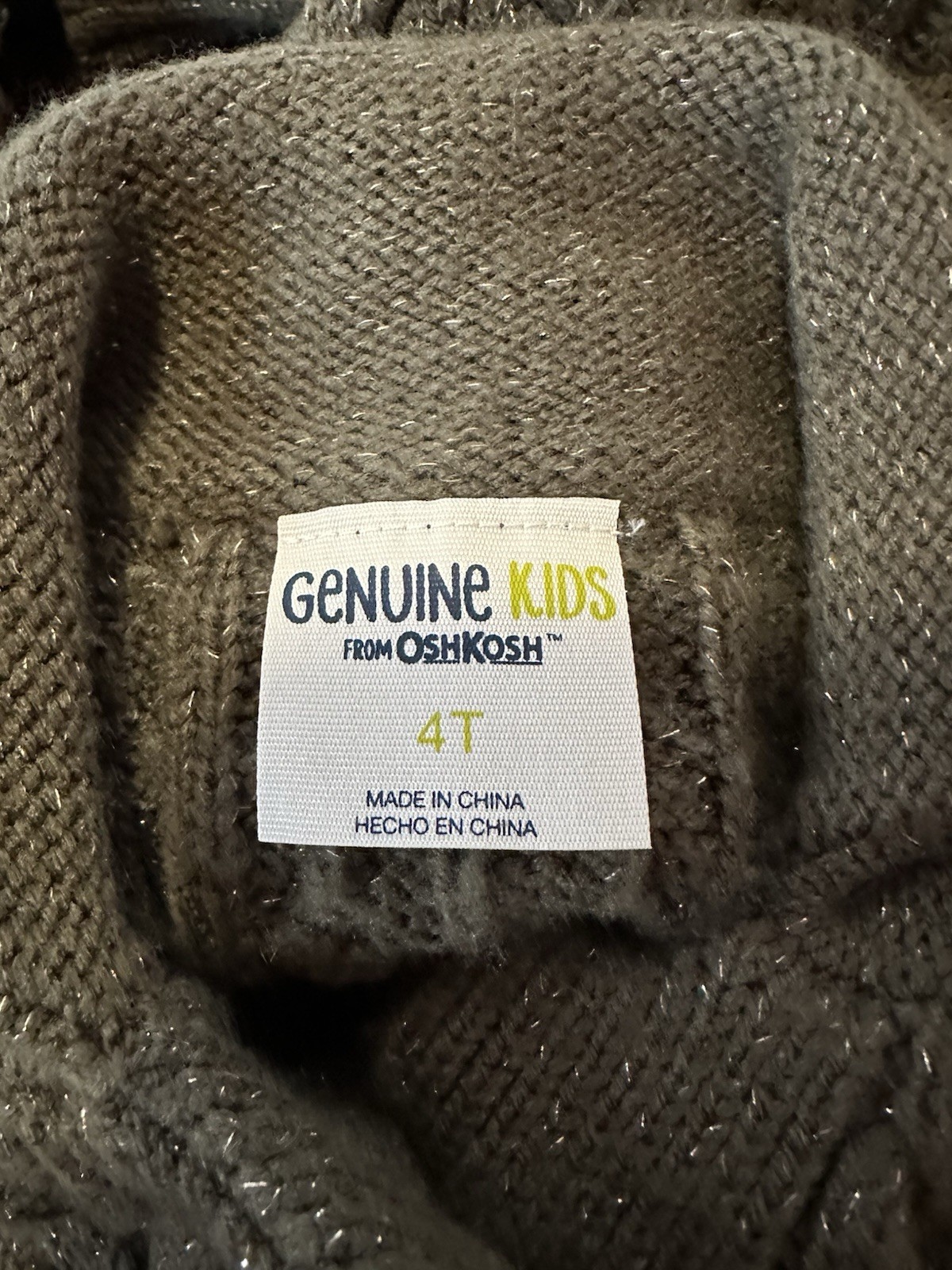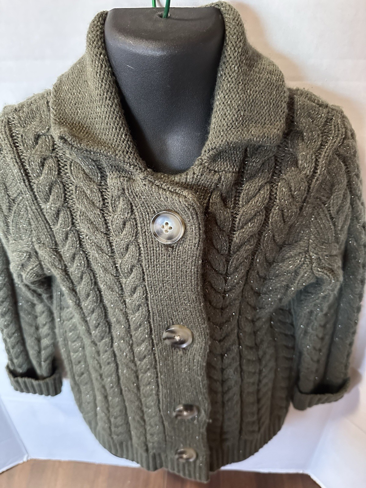 Girls Genuine Kids Oshkosh Cable Knit Green Sweater Button Up Cardigan Size 4T
