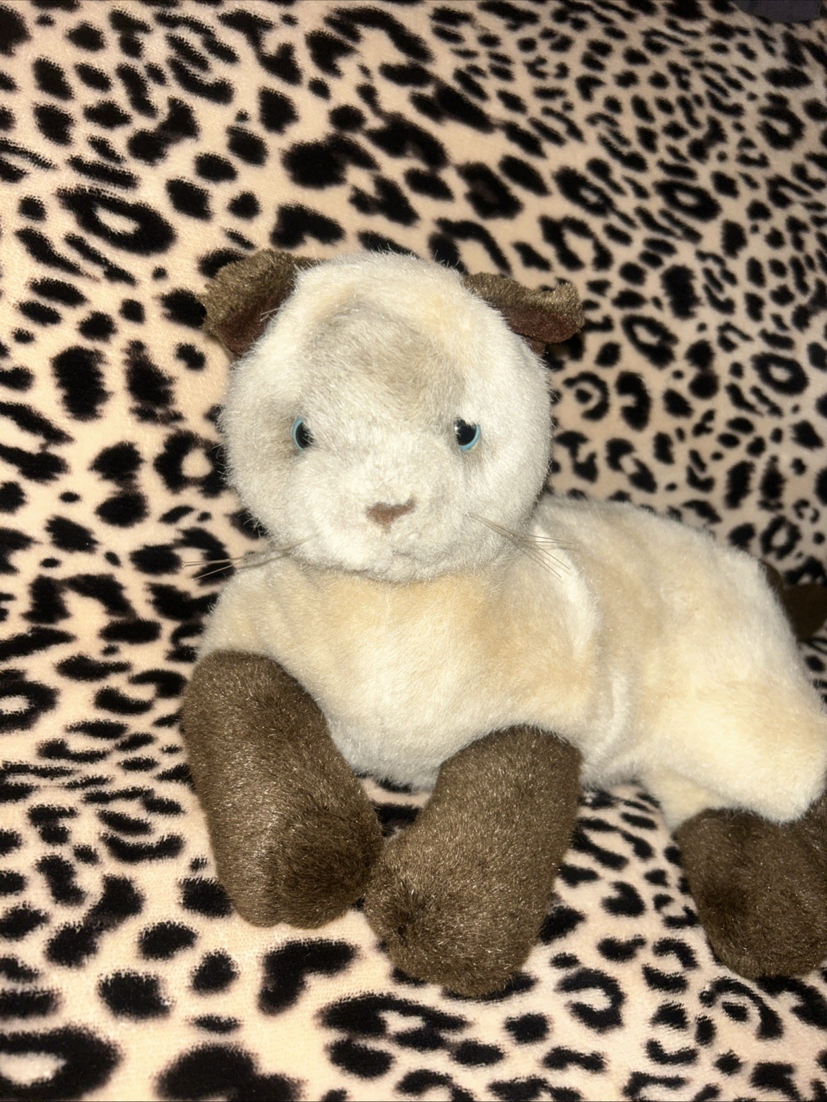 как выглядит Vintage 1992 DAKIN Siamese Cat Kitty Plush Tan Black Stuffed Animal Blue Eyes фото