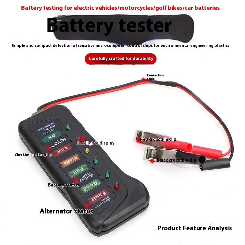 12V Car Fault Detector Battery Tester Digital Alternator Tester Motorcycle