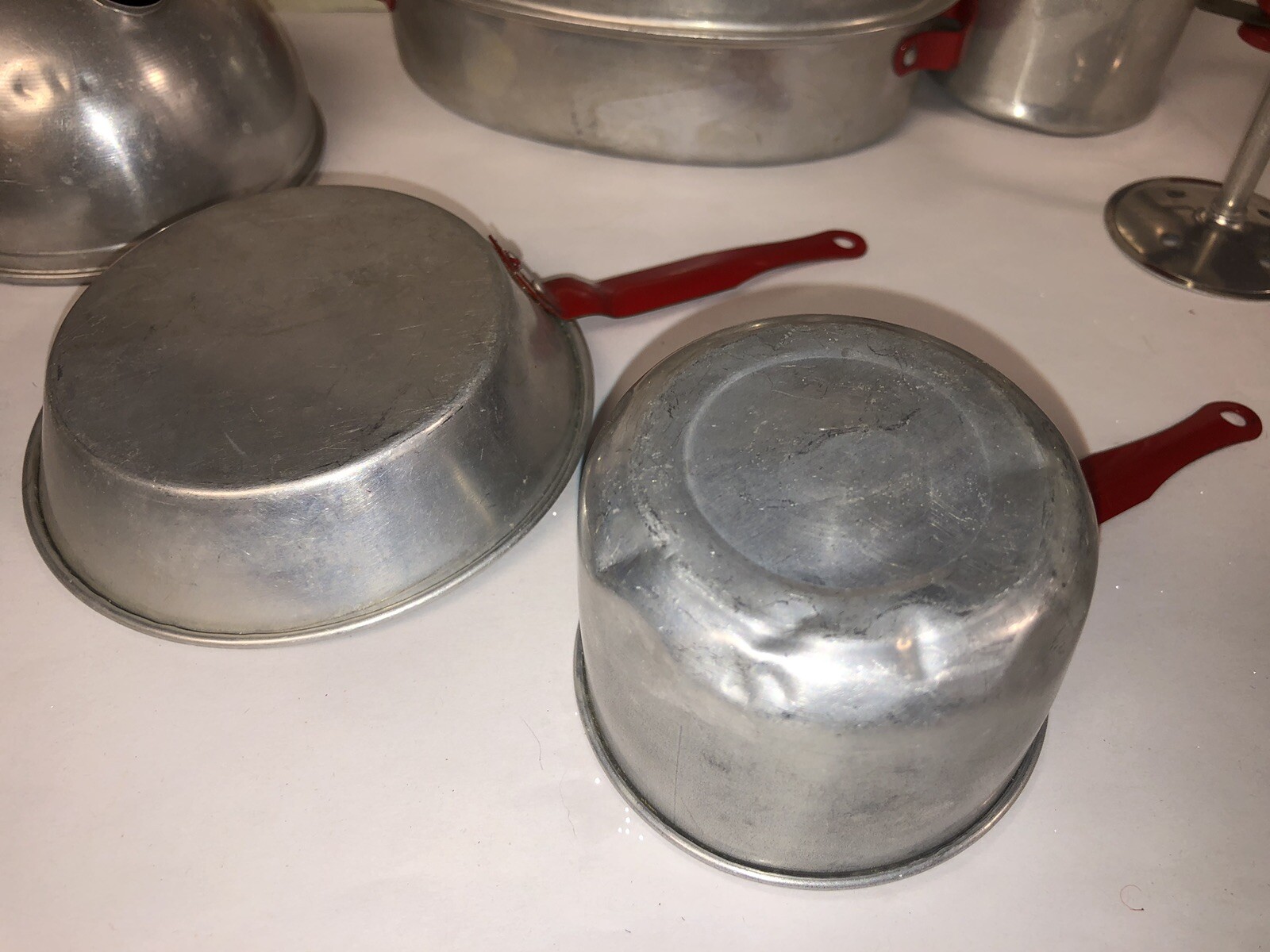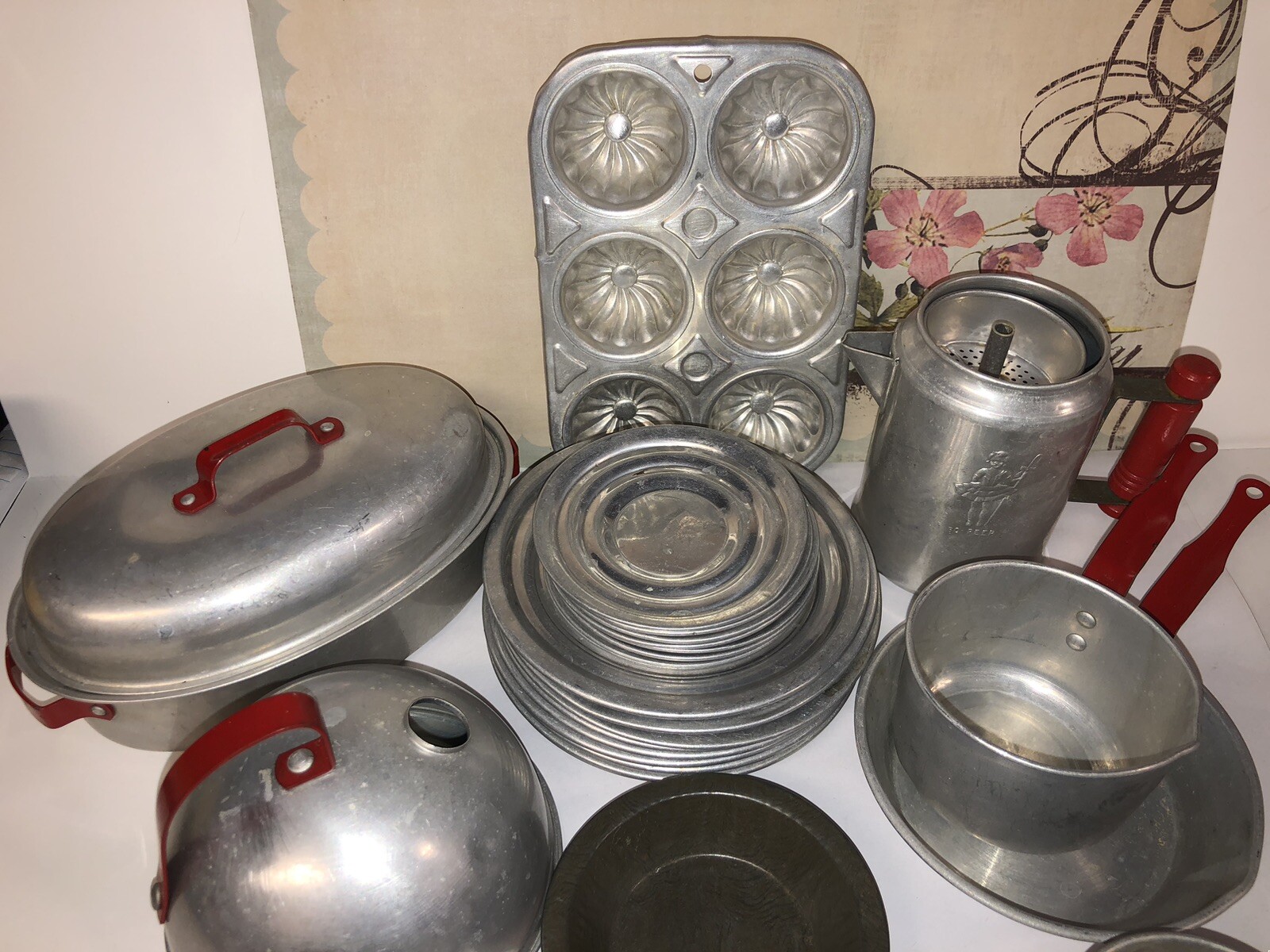 Vintage Aluminum BO-PEEP Childs Play Toy Roaster Pans Plates More 34 Pcs AS IS