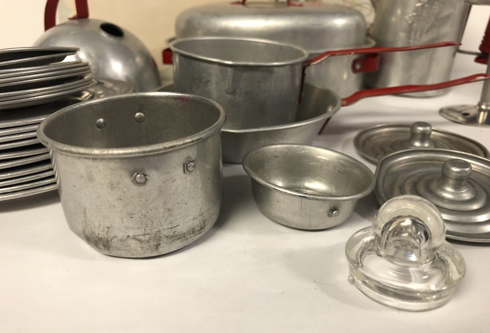 как выглядит Vintage Aluminum BO-PEEP Childs Play Toy Roaster Pans Plates More 34 Pcs AS IS фото
