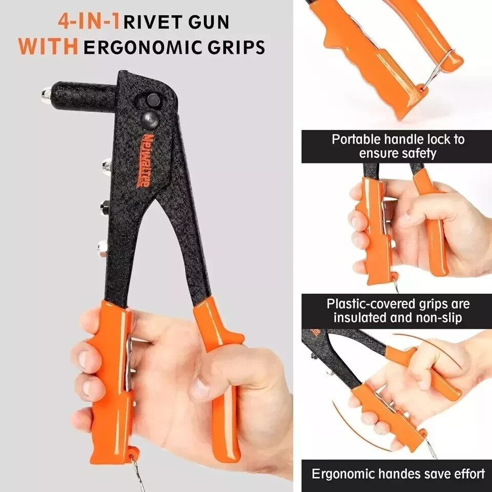 Heavy Hand Riveter Rivet Gun Professional Pop Rivet Gun Kit with 200pcs Rivets